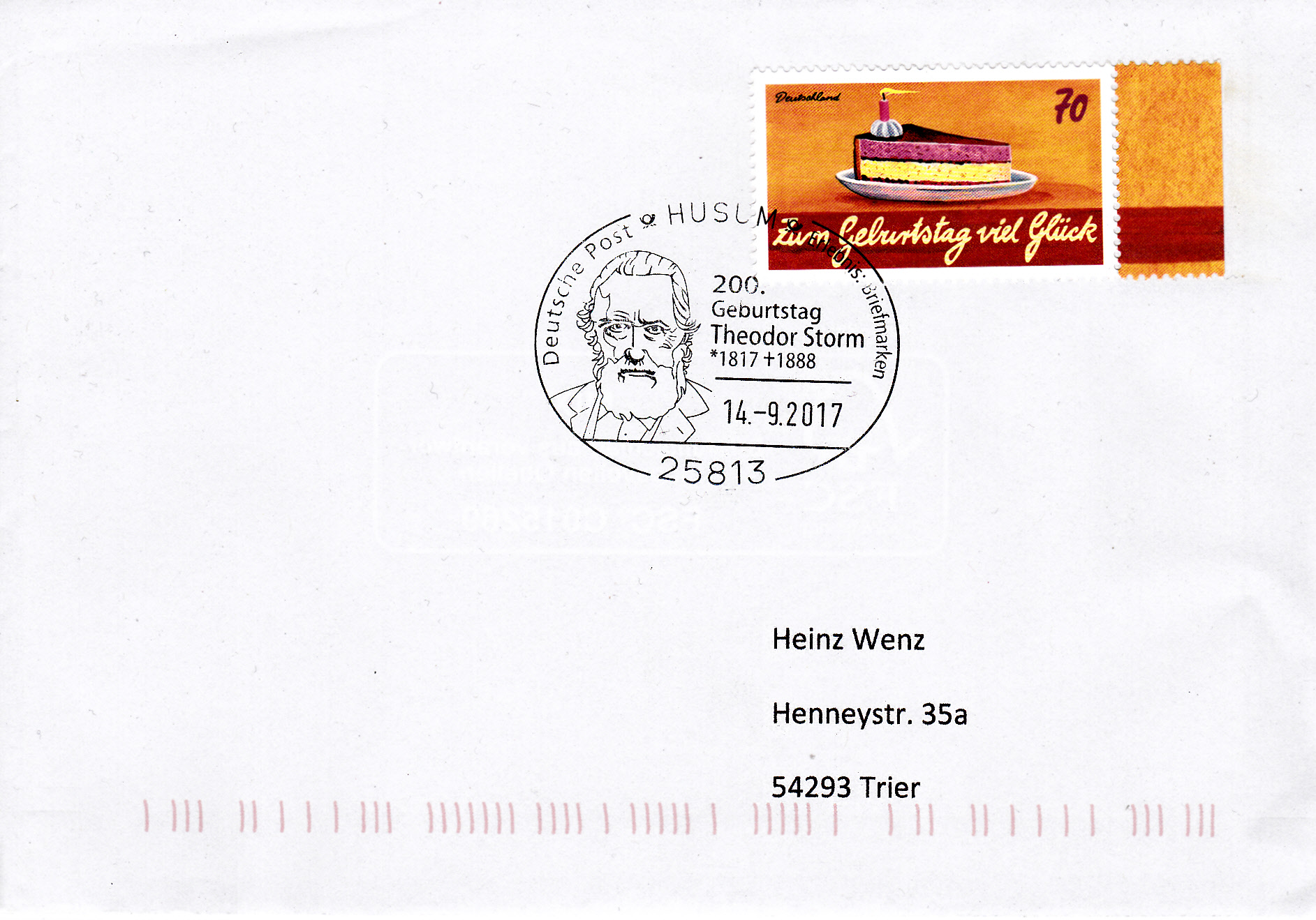 Sonderstempel vom 14.9.2017 aus Husum zum 200. Geburtstag von Theodor Storm.