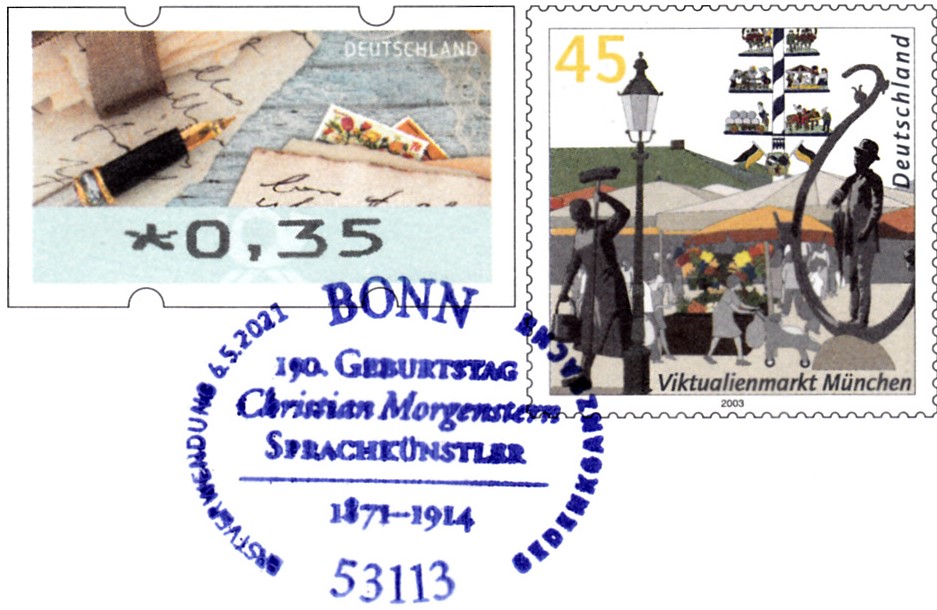 Zum 150. Geburtstag von Christian Morgenstern ist bei der Deutschen Post eine Sonderganzsache erschienen. Hier zeige ich ein unbenutztes Exemplar.