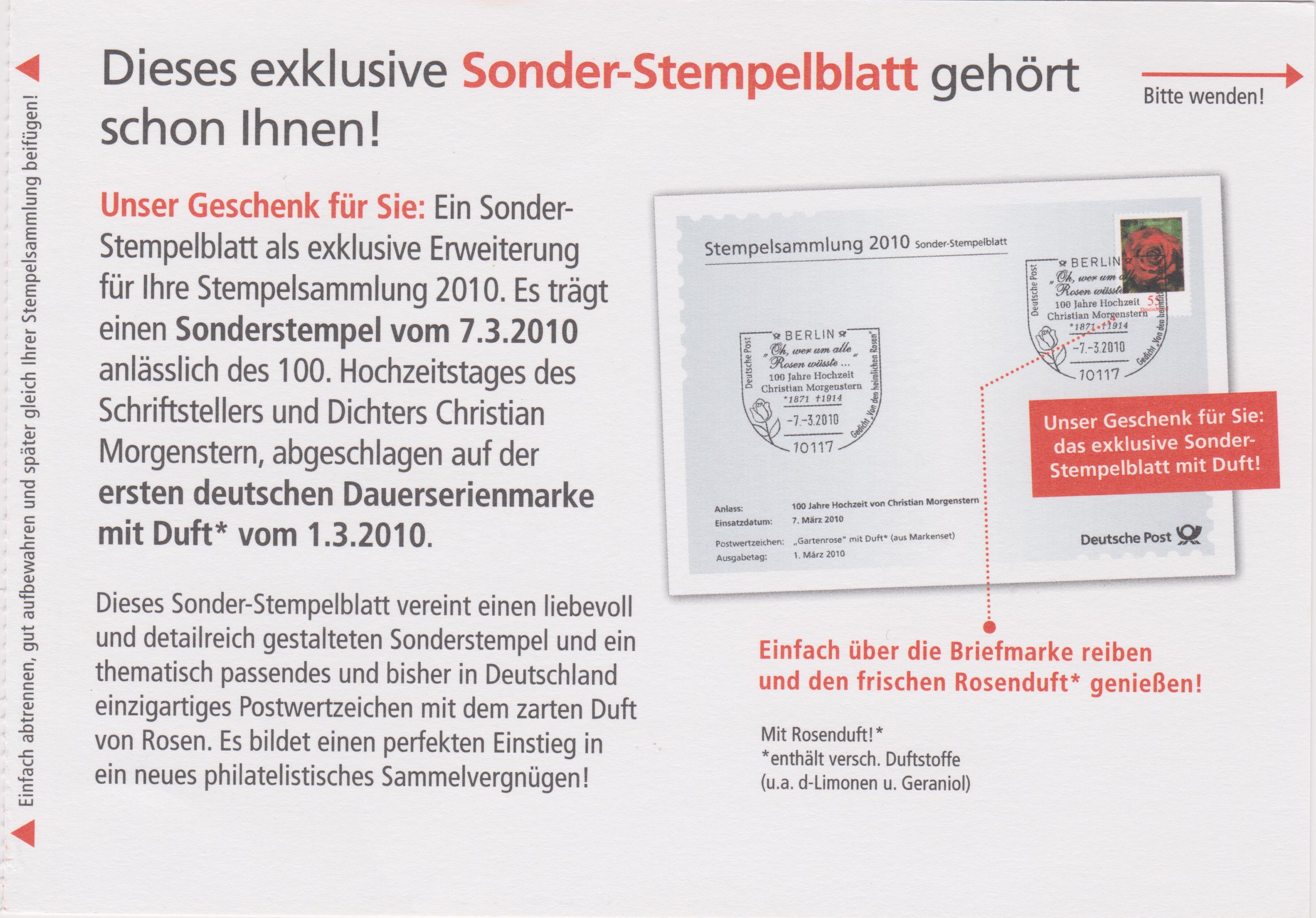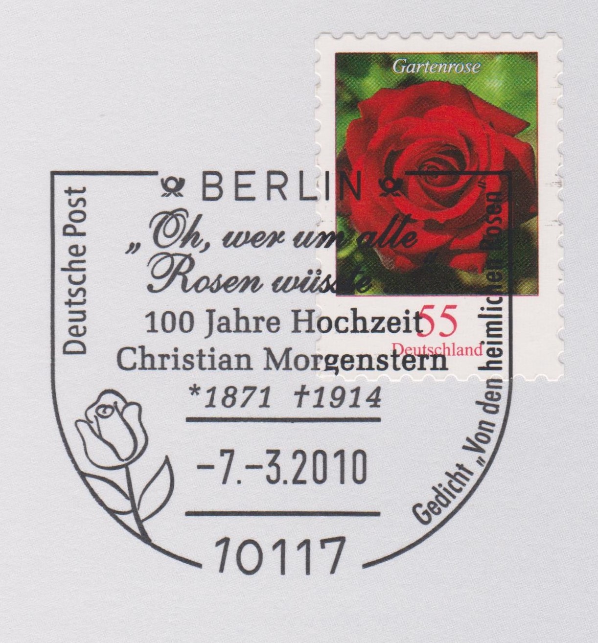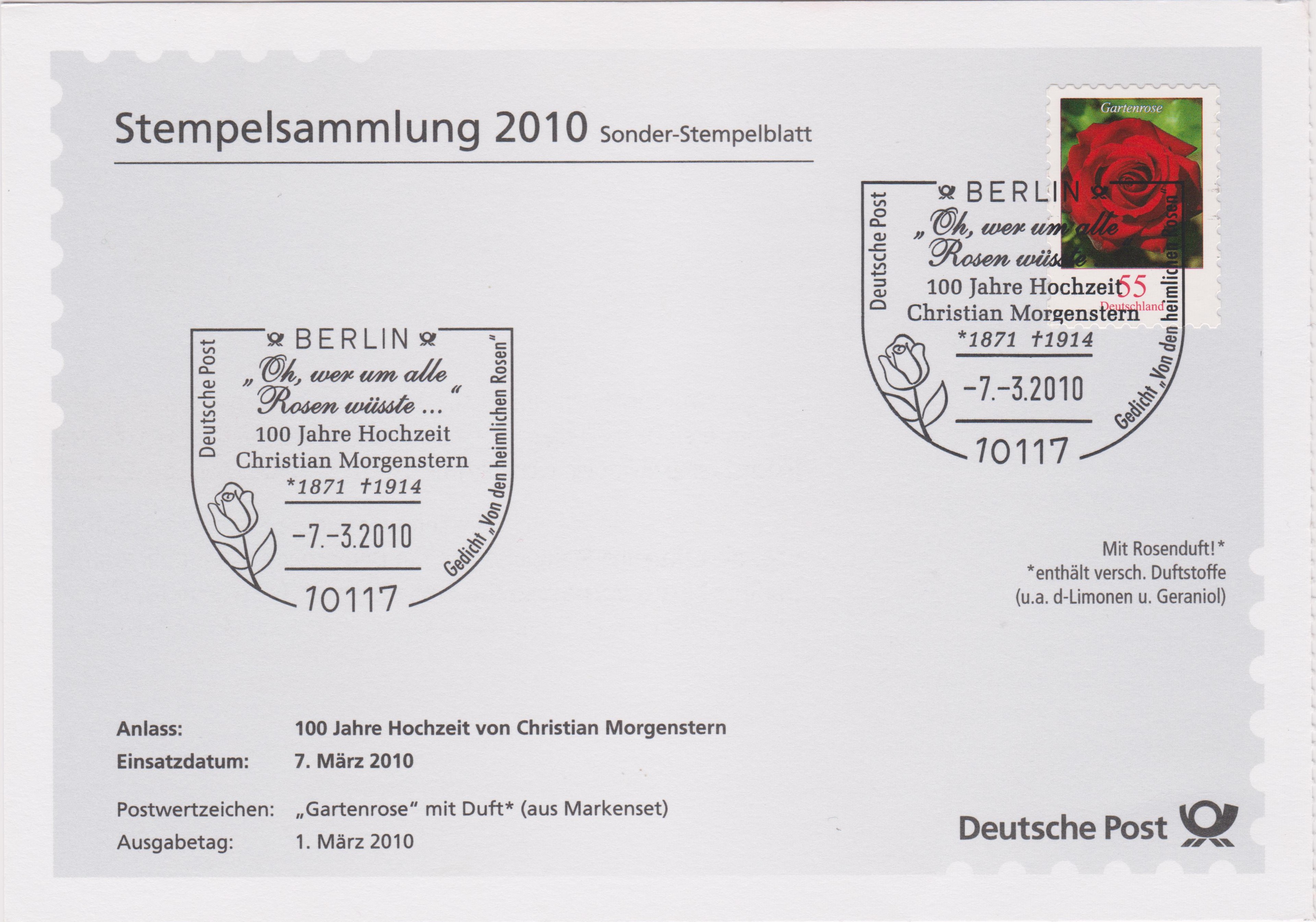 Dieses Gedicht dokumentiert der Sonderstempel vom 07.03.2010 aus Berlin auf diesem Sonder-Stempelblatt der "Deutsche Post Stempelsammlung 2010":