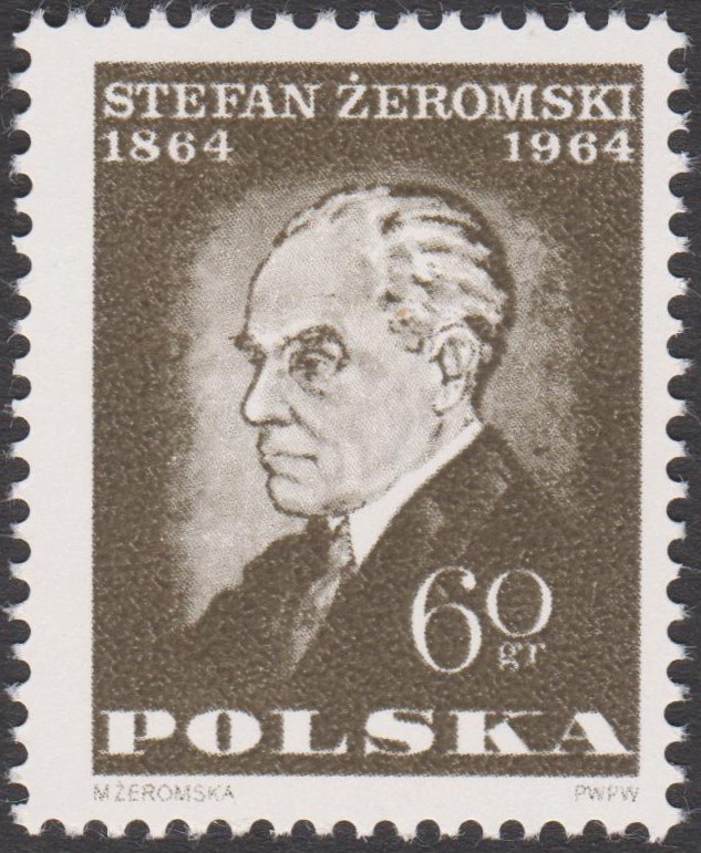 In einer Serie "Polnische Kultur" erschien in Polen diese Marke (MiNr 467 B) mit einem Porträt von Stefan Żeromski (Mitte der Marke).