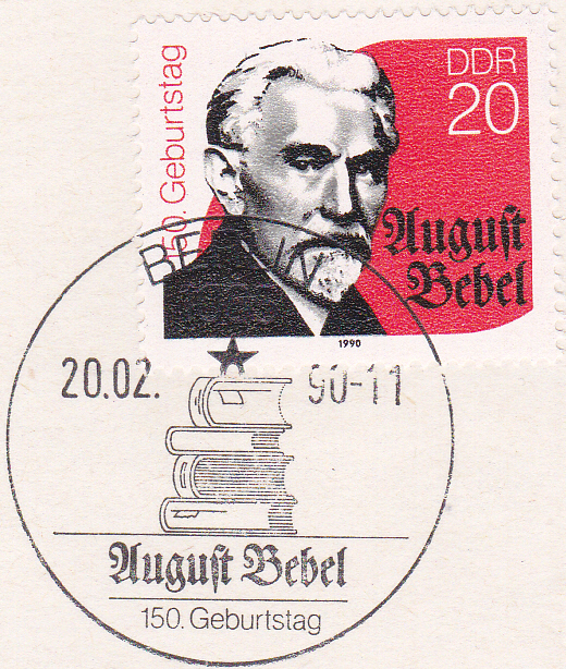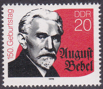 Zum 150. Geburtstag von August Bebel erschien in der DDR eine Marke (MiNr 3310) mit seinem Porträt.