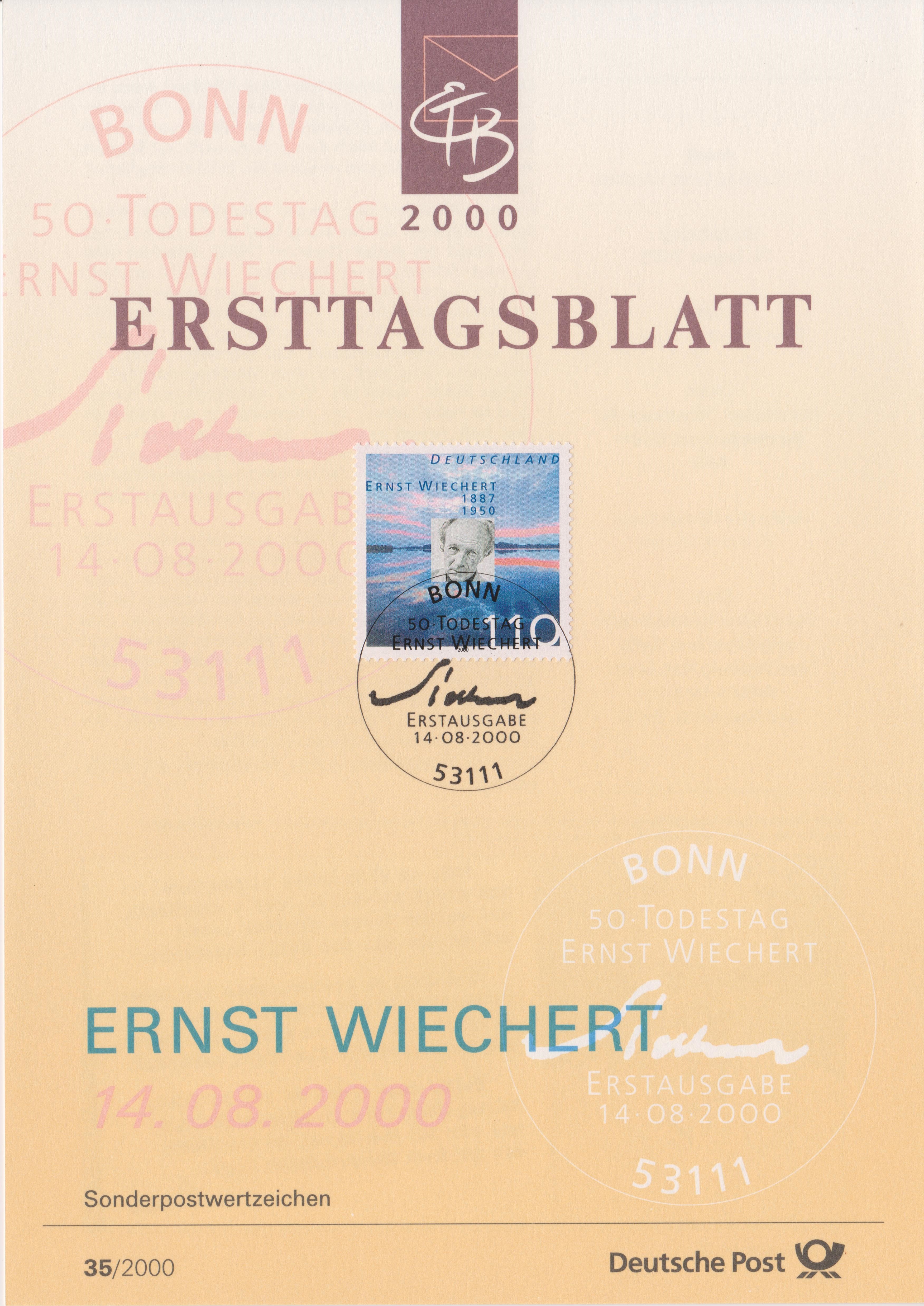 ETB 35/2000 vom 14.08.2000 mit BUND MiNr. 2132 erschien zum 50. Todestag von Ernst Wiechert: