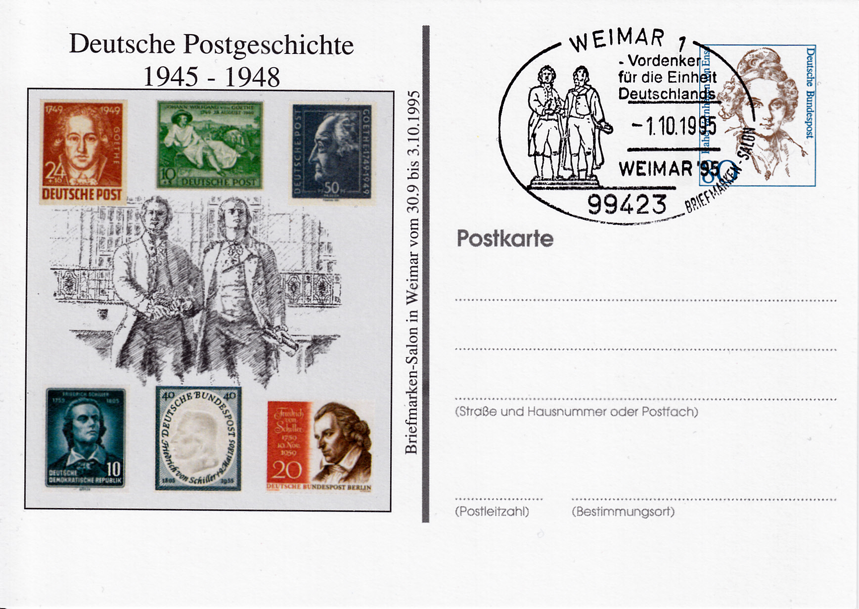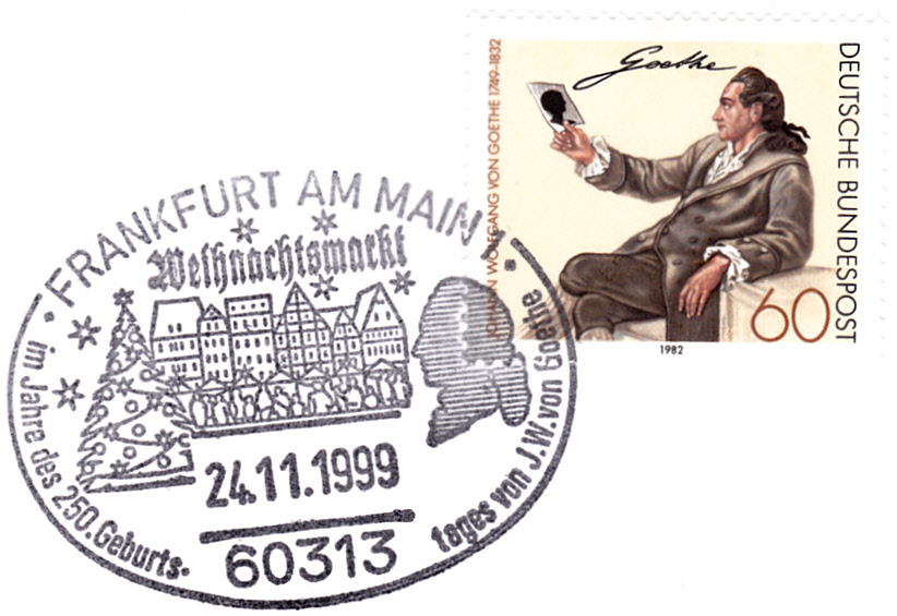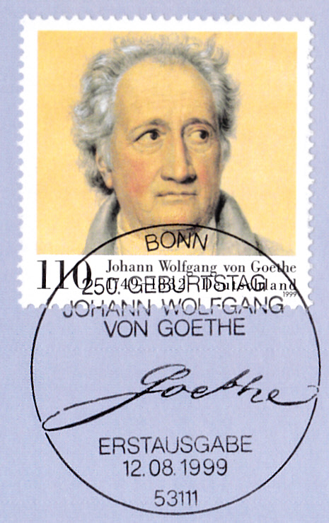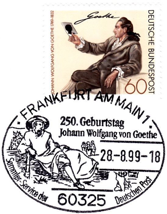 In einer Blockausgabe zum Wiederaufbau des Deutschen Nationaltheaters Weimar ist in der Sowjetischen Besatzungszone für Thüringen (OPD Erfurt) eine Marke (MiNr 108) mit einem Porträt von Goethe erschienen.