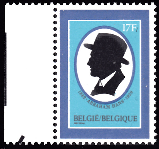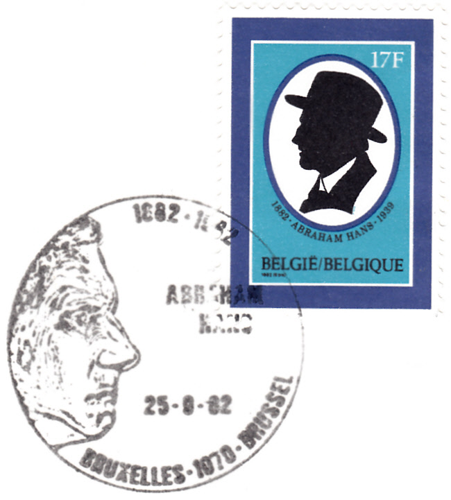 Zum 100. Geburtstag von Abraham Hans erschien in Belgien diese Marke (MiNr 2116) mit seinem Porträt als Scherenschnitt.