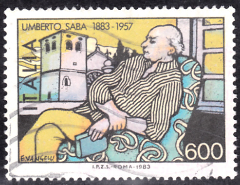 Zum 100. Geburtstag von Umberto Saba wurde in Italien eine Marke mit ihm in einem Sesselsitzend verausgabt.