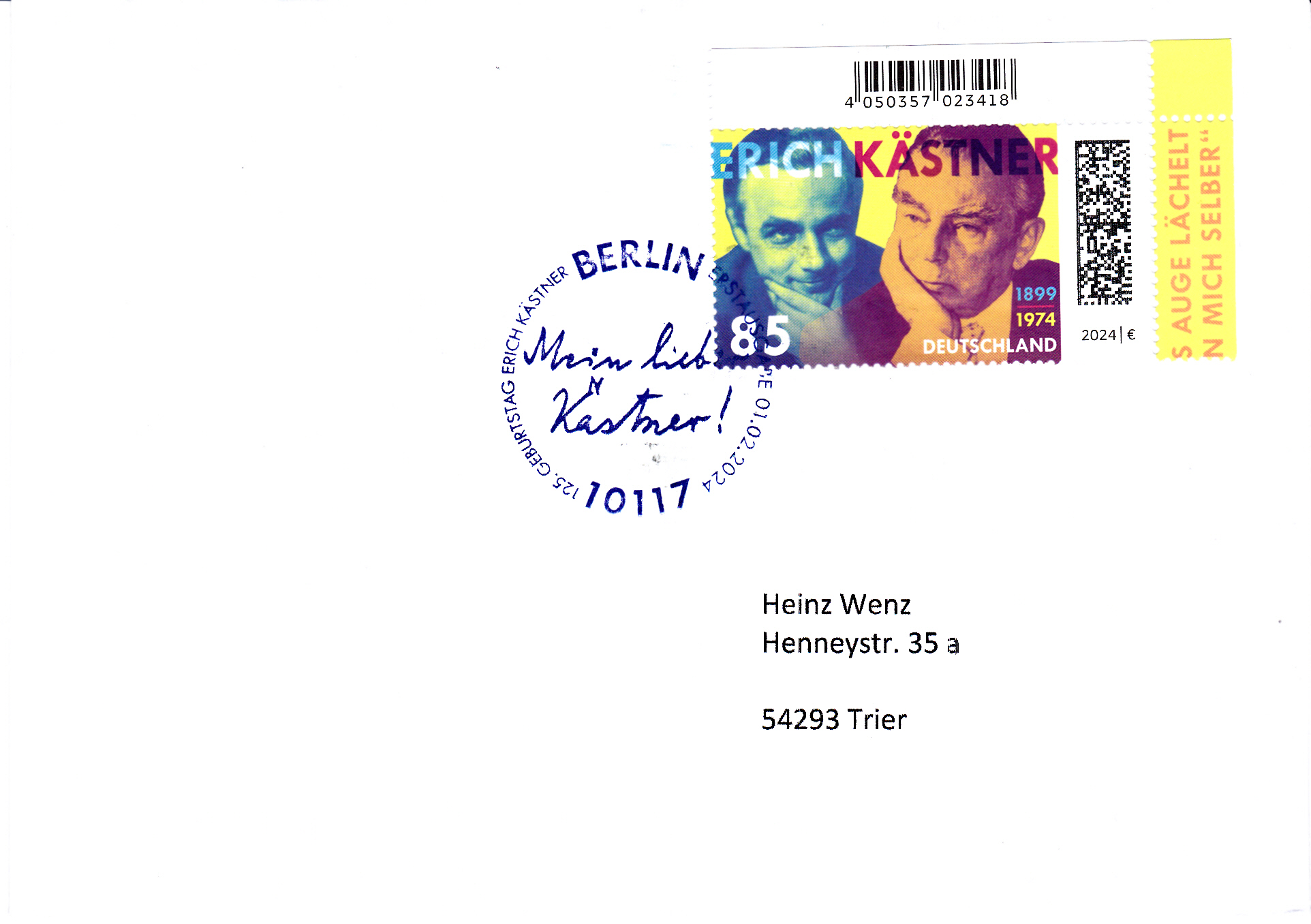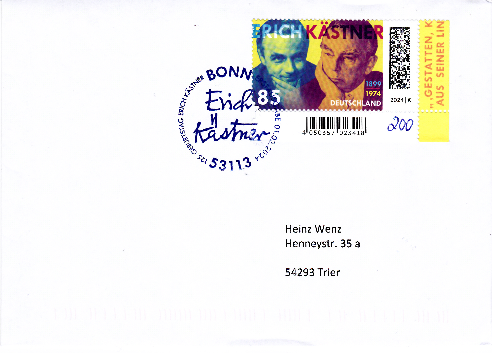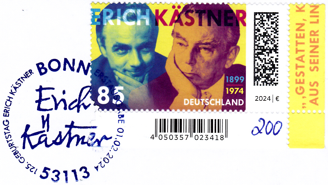 Zum 40. Todestag Erich Kästner ist bei der Deutschen Post eine Gedenkganzsache erschienen.