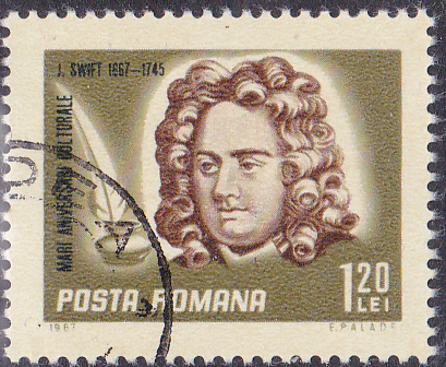 Aus Rumänien kommt eine Marken(MiNr 2611) mit einem Porträt von Jonathan Swift.