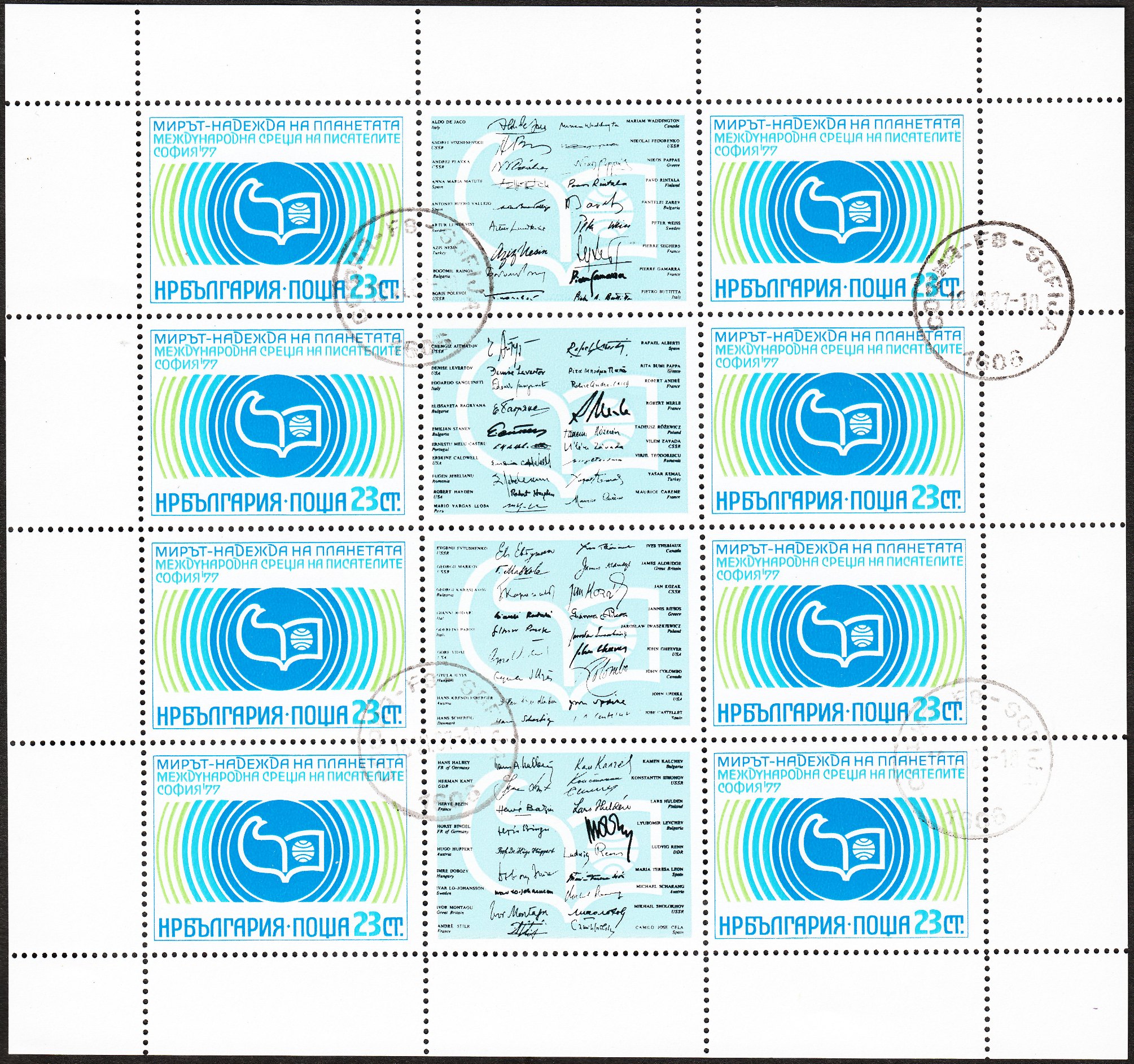 Zu diesem Anlaß erschien am 07.06.1977 in Bulgarien eine Sondermarke, die in einer Auflage von 60000 Kleinbogen zu 8 Marken und 4 verschiedenen Zierfeldern gedruckt wurde: