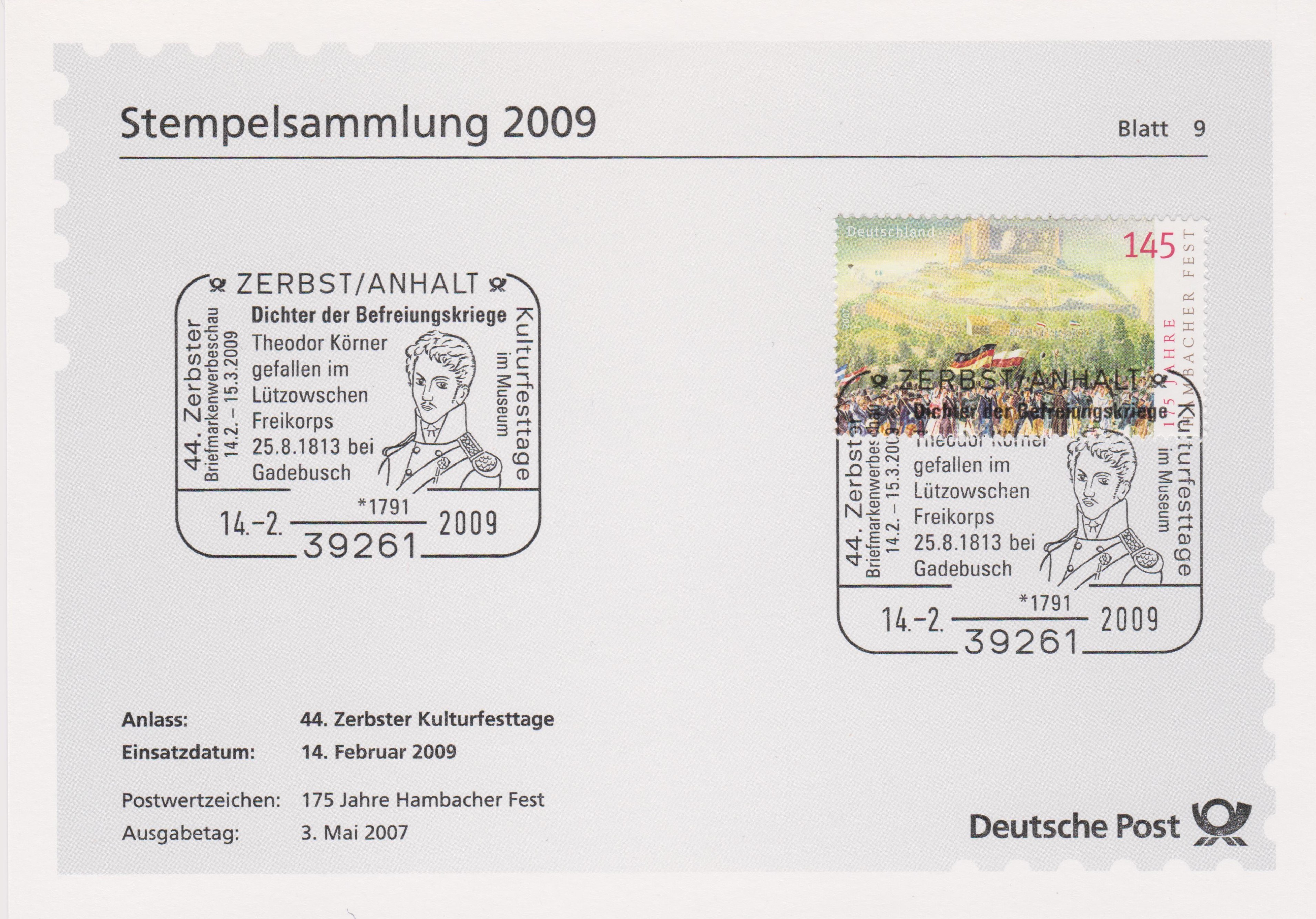 Zum 200. Geburtstag von Th. Körner erschien bei der Deutschen Bundespost ein Block mit zwei Marken: