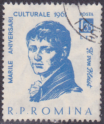 Auf dieser Marke aus Rumänien (MiNr 2007) ist ein Porträt von Heinrich von Kleist zu sehen.