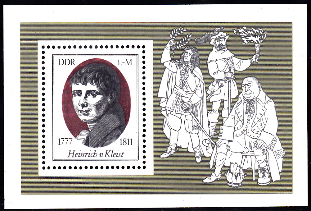 Zum 200. Geburtstag von Heinrich von Kleist ist in der DDR ein Block (MiNr Block 51 mit Marke MiNr 2267) erschienen.