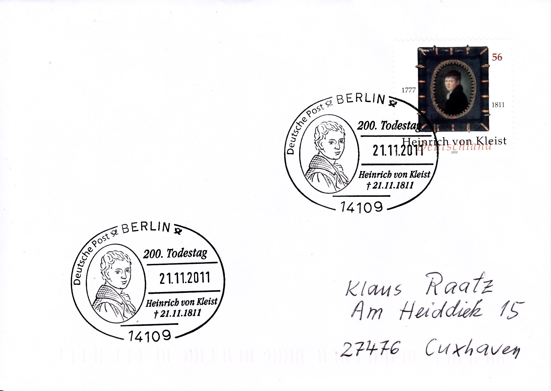Sonderstempel aus Berlin zum 200. Todestag von Heinrich von Kleist.
