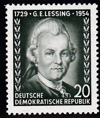 Zum 225. Geburtstag von Gotthold Ephraim Lessing gab es in der DDR eine Marke (MiNr 423) mit einem Porträt von Lessing.