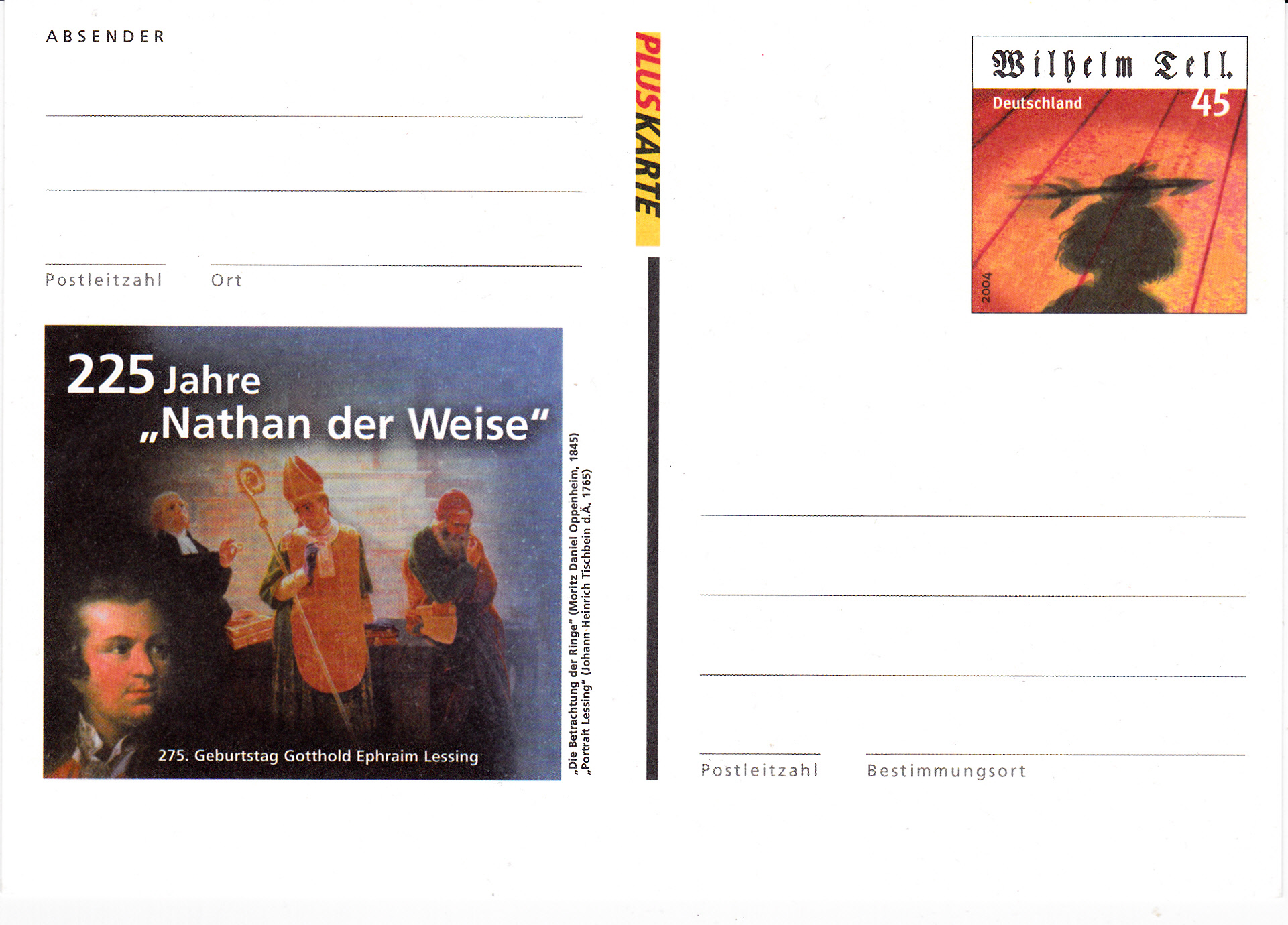 2004 erschien eine Sonderpostkarten (MiNr PSo 84) mit zum Jubiläum "225 Jahre Nathan der Weise" und zum 275. Geburtstag von Gotthold Ephraim Lessing. Als Wertstempel wurde die Marke "Wilhelm Tell (MiNr 2391) verwendet.