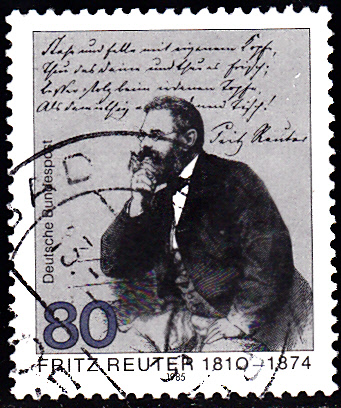Zum 175. Geburtstag von Fritz Reuter erschien bei der Deutschen Bundespost eine Marke (MiNr 1263) mit seinem Porträt und einem Autograph.
