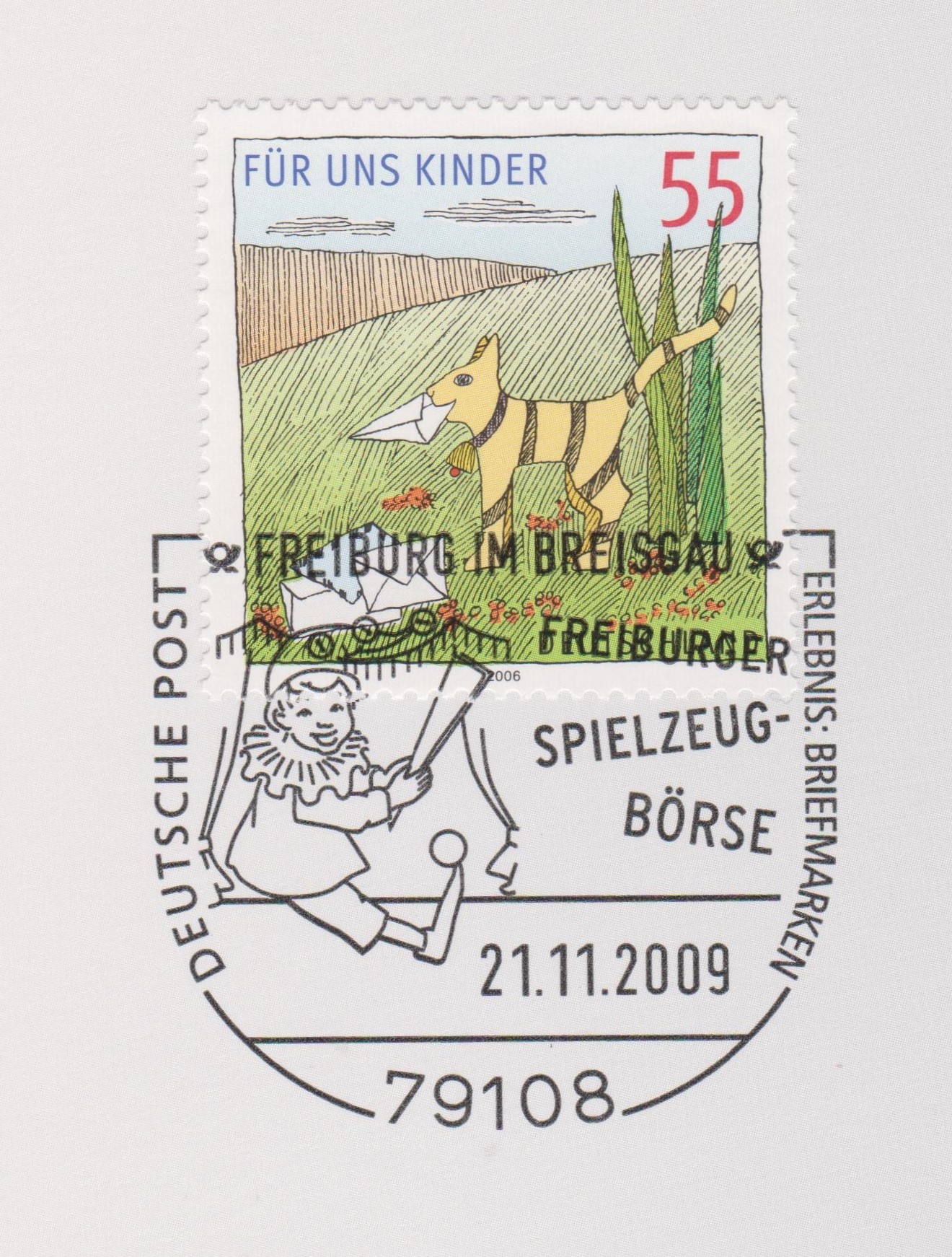 Blatt 50 der Deutsche Post Stempelsammlung 2009 zeigt einen Sonderstempel vom 21.11.2009 aus 79108 FREIBURG IM BREISGAU mit einem Kasper im Puppentheater als Motiv: