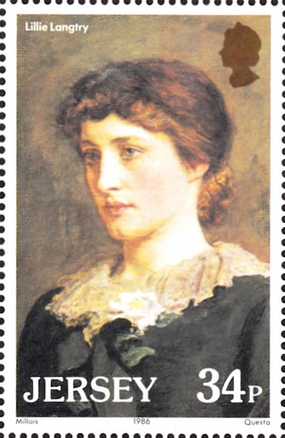Auf dieser Marke aus Großbritannien-Jersey (MiNr 373) sehen wir ein Porträt von Lillie Langtry nach einem Gemälde von John Everett Millais (1829-1896).