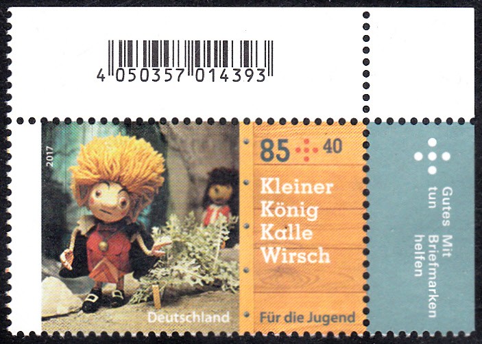 Auf der Marke zu 85+40 Cent (MiNr 3326) ist der "Kleine König Kalle Wirsch" zu sehen.