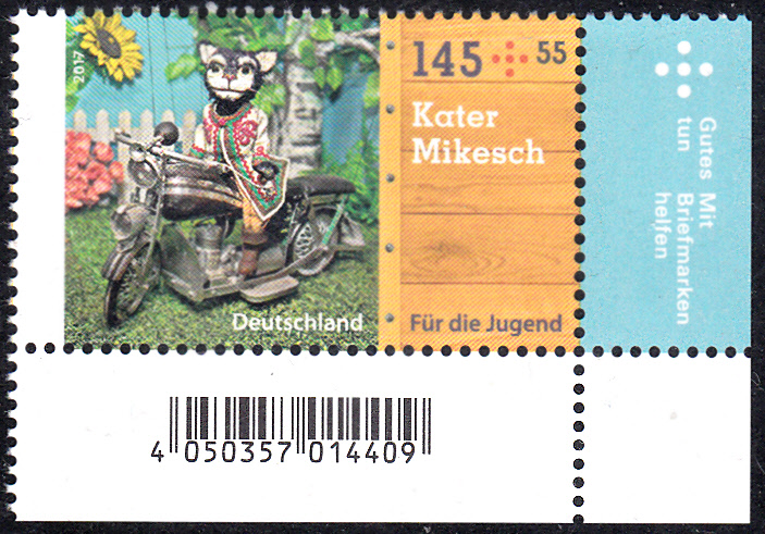 Die dritte Marke im Wert von 145+55 Cent (MiNr 3327) zeigt den "Kater Mikesch".