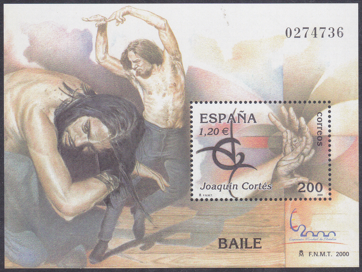 Zur Internationalen Briefmarkenausstellung ESPAÑA 2000 in Madrid erschien in Spanien ein Block (MiNr Block 92 mit Marke MiNr 3595) mit Joaquín Cortés.