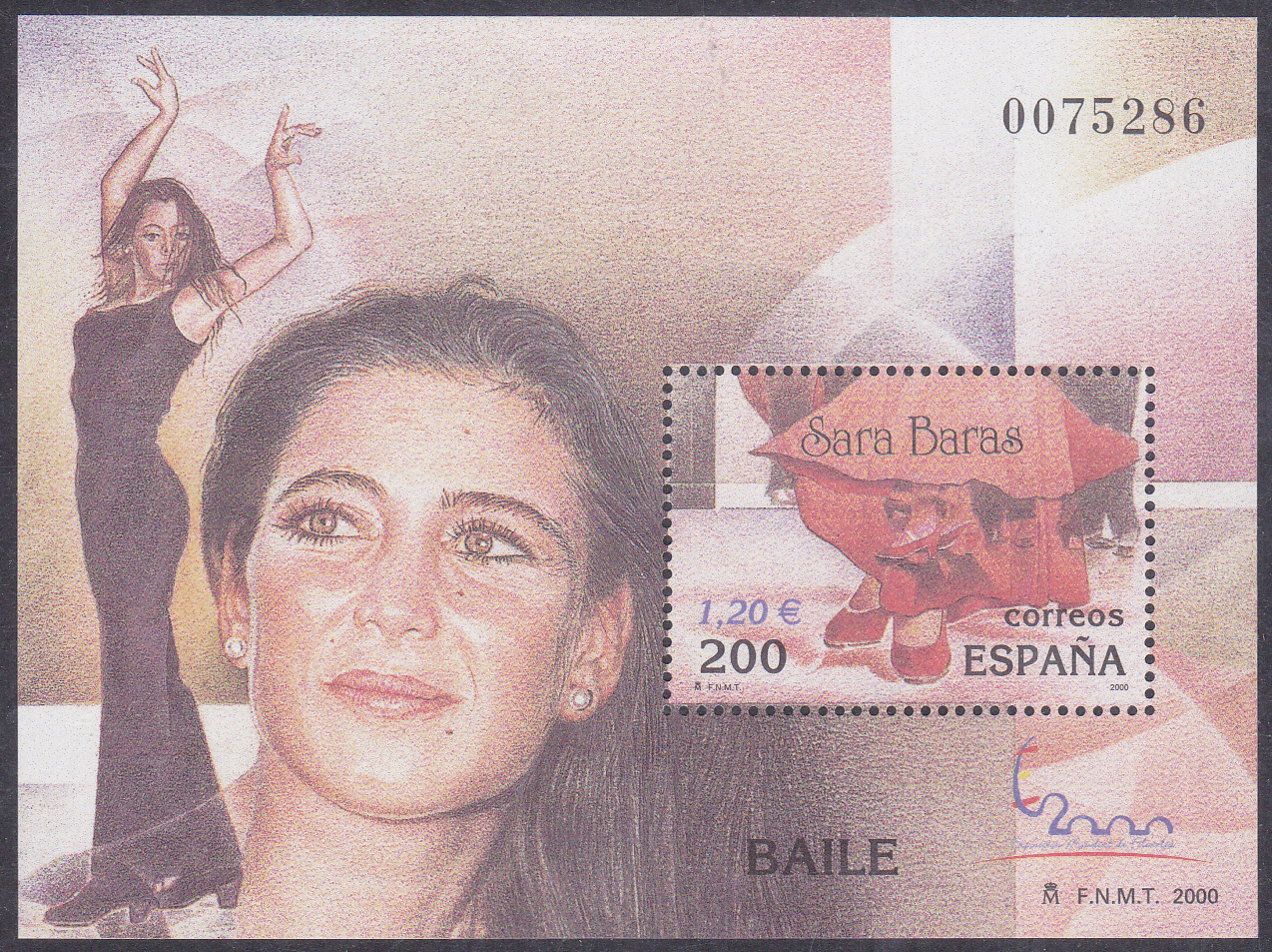 Zur Internationalen Briefmarkenausstellung ESPAÑA 2000 in Madrid erschien in Spanien ein Block (MiNr Block 93 mit Marke MiNr 3596) mit Sara Baras.
