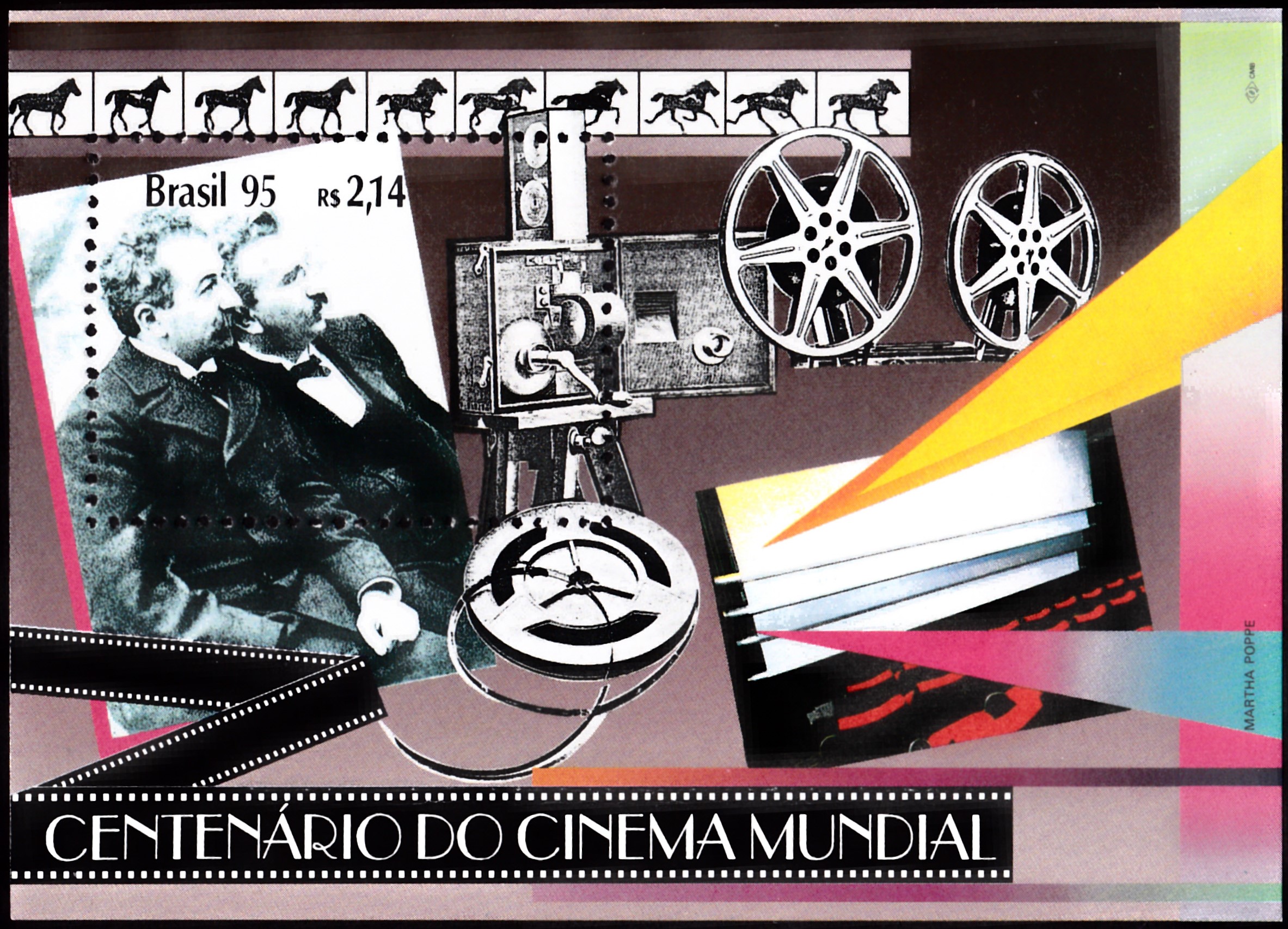 Auf einer Marke aus Brasilien (MiNr 2679) im Block "100 Jahre Kino" (MiNr Block 97) werden die Brüder Lumière gezeigt.