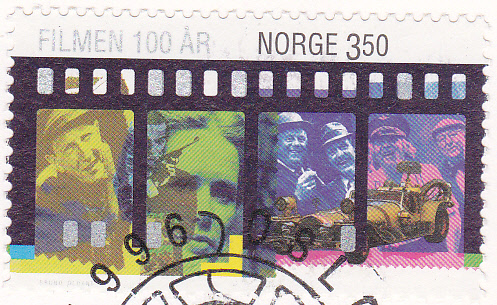 Ein Porträt von Liv Ullmann ist auf dieser norwegischen Marke (MiNr 1215) aus einer Serie "100 Jahre Kino in Norwegen" im zweiten Bild im Filmstreifen im rechten Teil und als Hintergrund zu sehen.