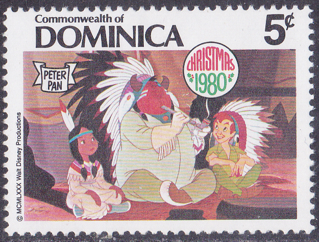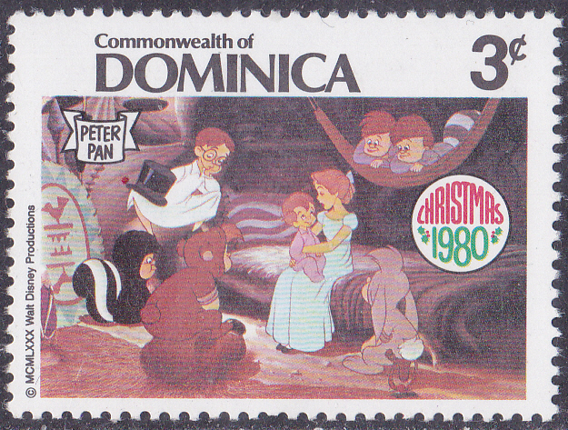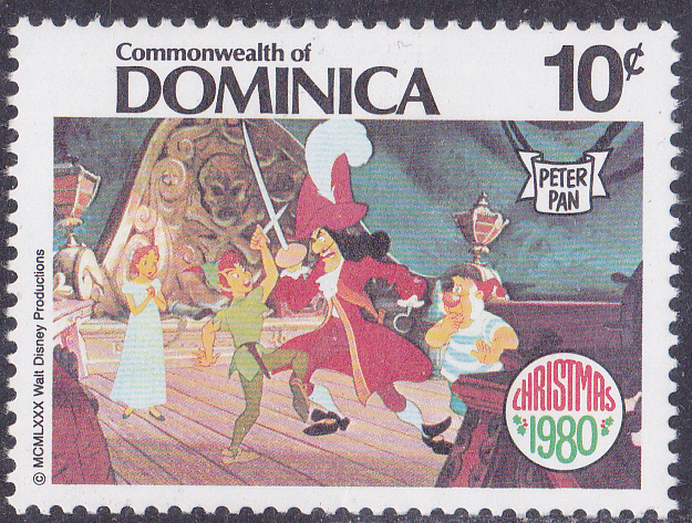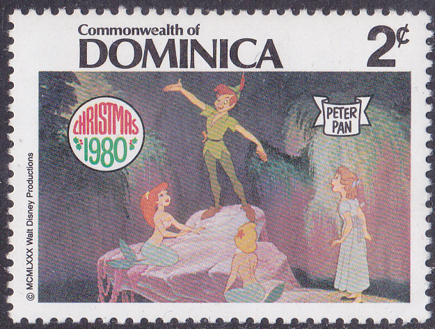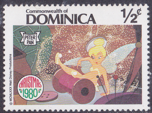 In Dominica ist in einer Serie mit Szenen aus "Peter Pan" diese Marke (MiNr 691) mit der Fee Tinker Bell erschienen.