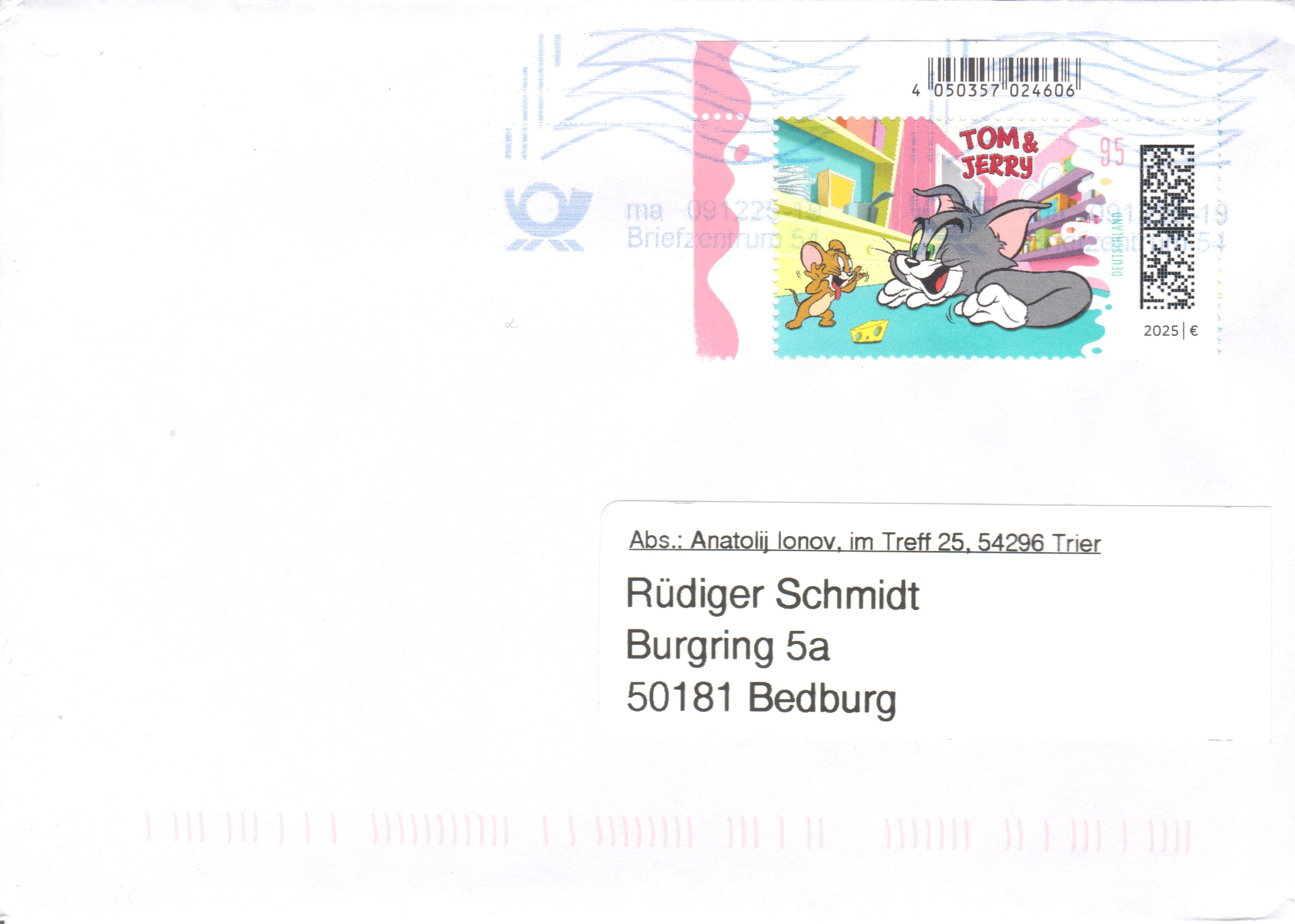 Mischfrankatur am 09.12.2025 auf Brief der Portostufe 1,10 €: