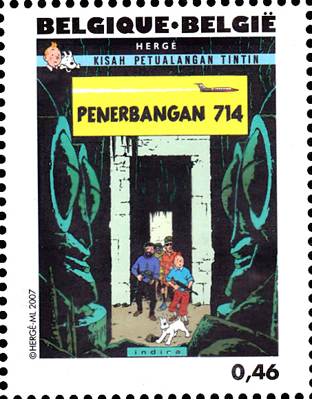 Marke (MiNr 3706) mit dem Titelbild des "Tim-und-Struppi-Albums "Flug 714 nach Sydney"" (1968) in Indonesisch.
