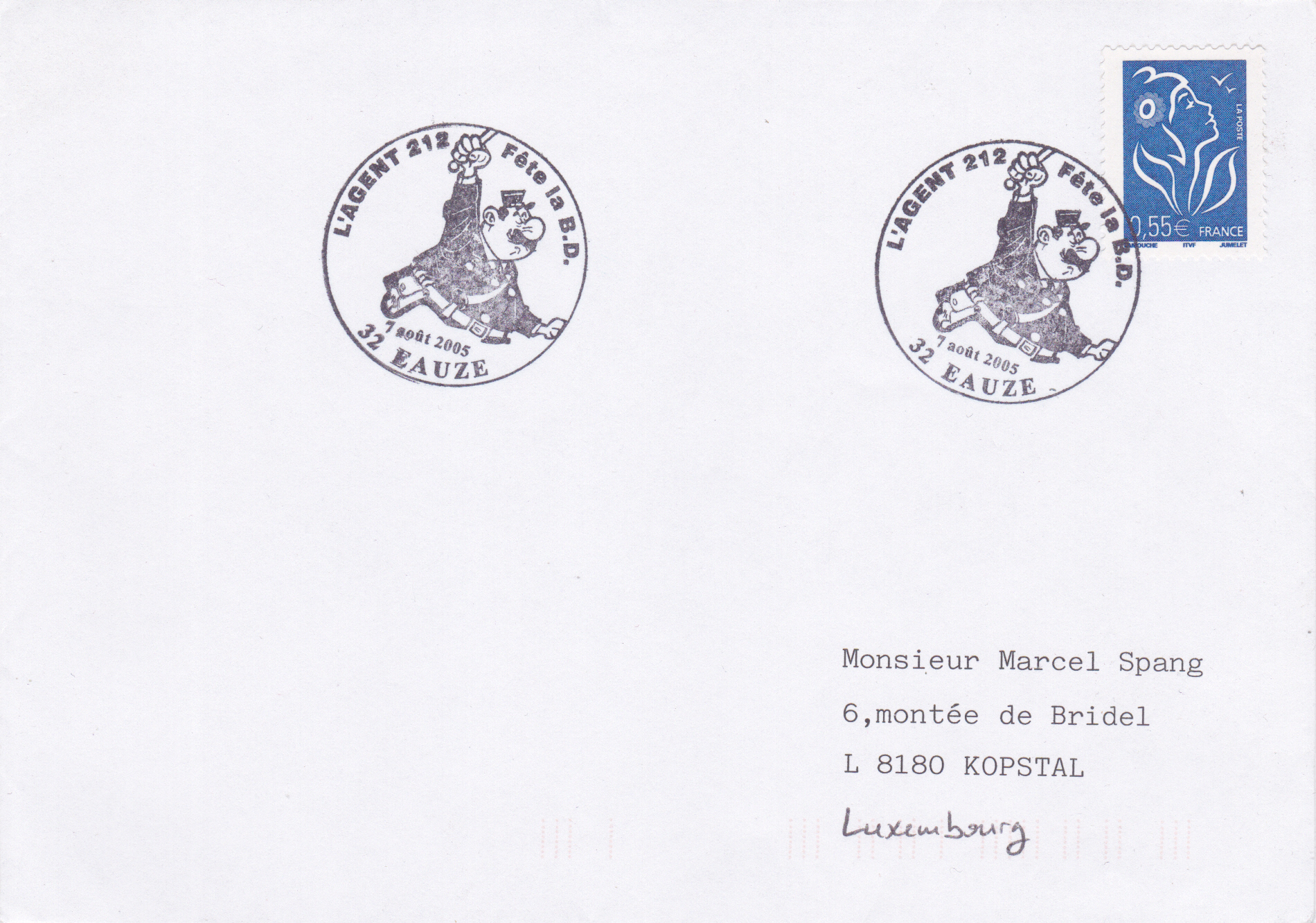 In einem Sonderstempel aus Eauze (Frankreich) vom 7. August 2005 wird der rundliche Polizist abgebildet.