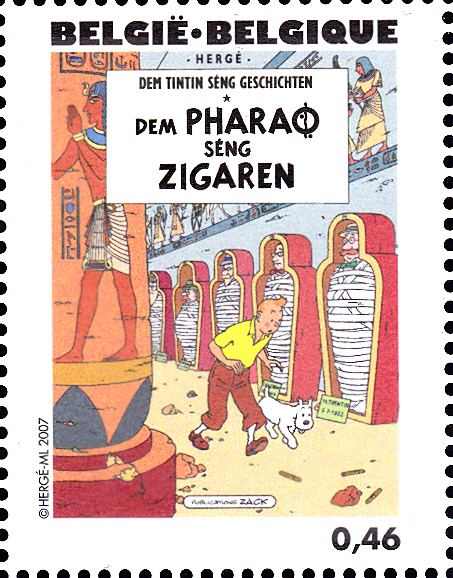 Marke (MiNr 3687) mit dem Titelbild des "Tim-und-Struppi-Albums "Die Zigarren des Pharaos"" (1932) in Luxemburgisch.