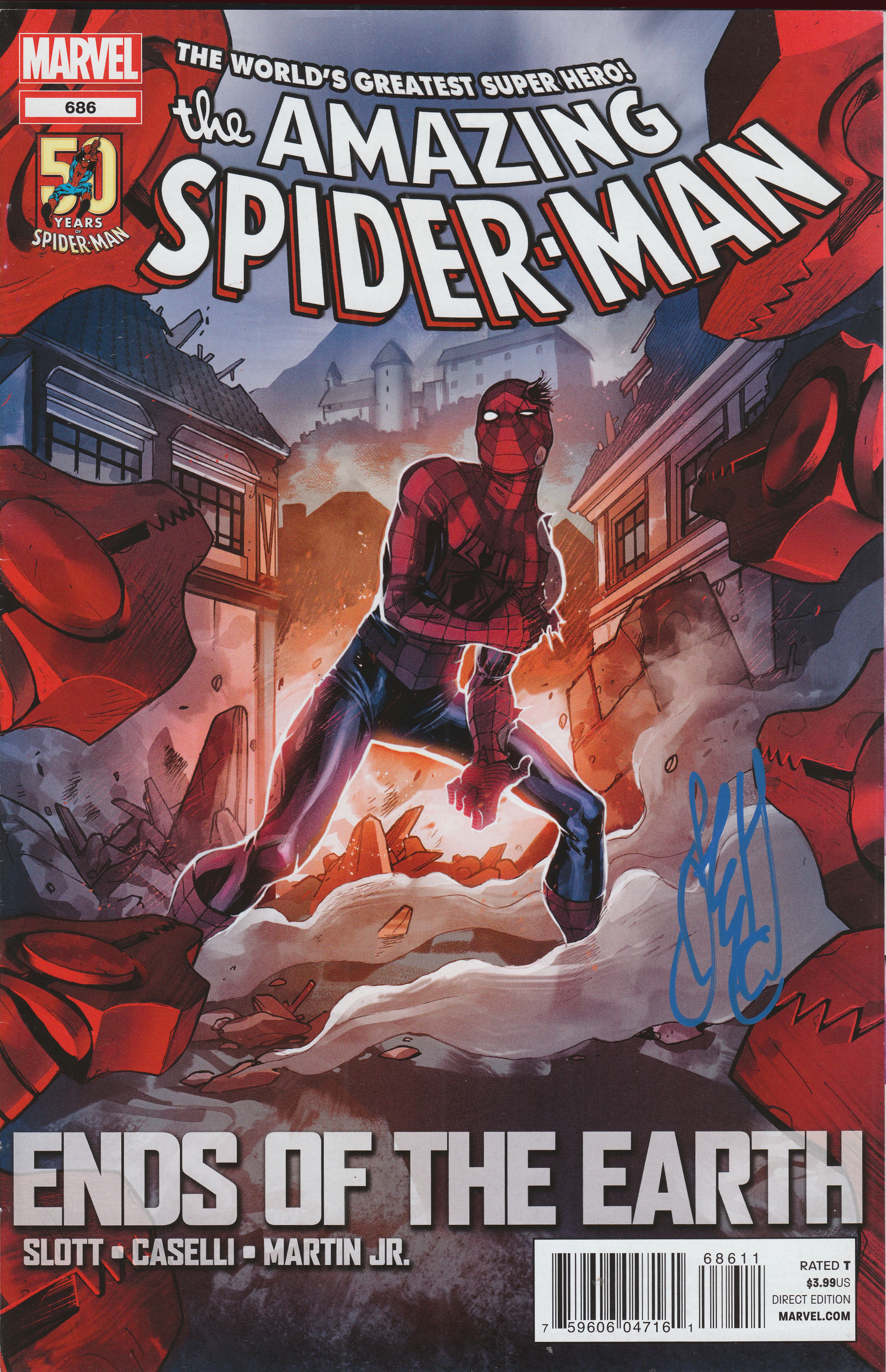 Hier ein Comicheft "the AMAZING SPIDER-MAN" #686, signiert vom italienischen Comiczeichner Stefano Caselli:
