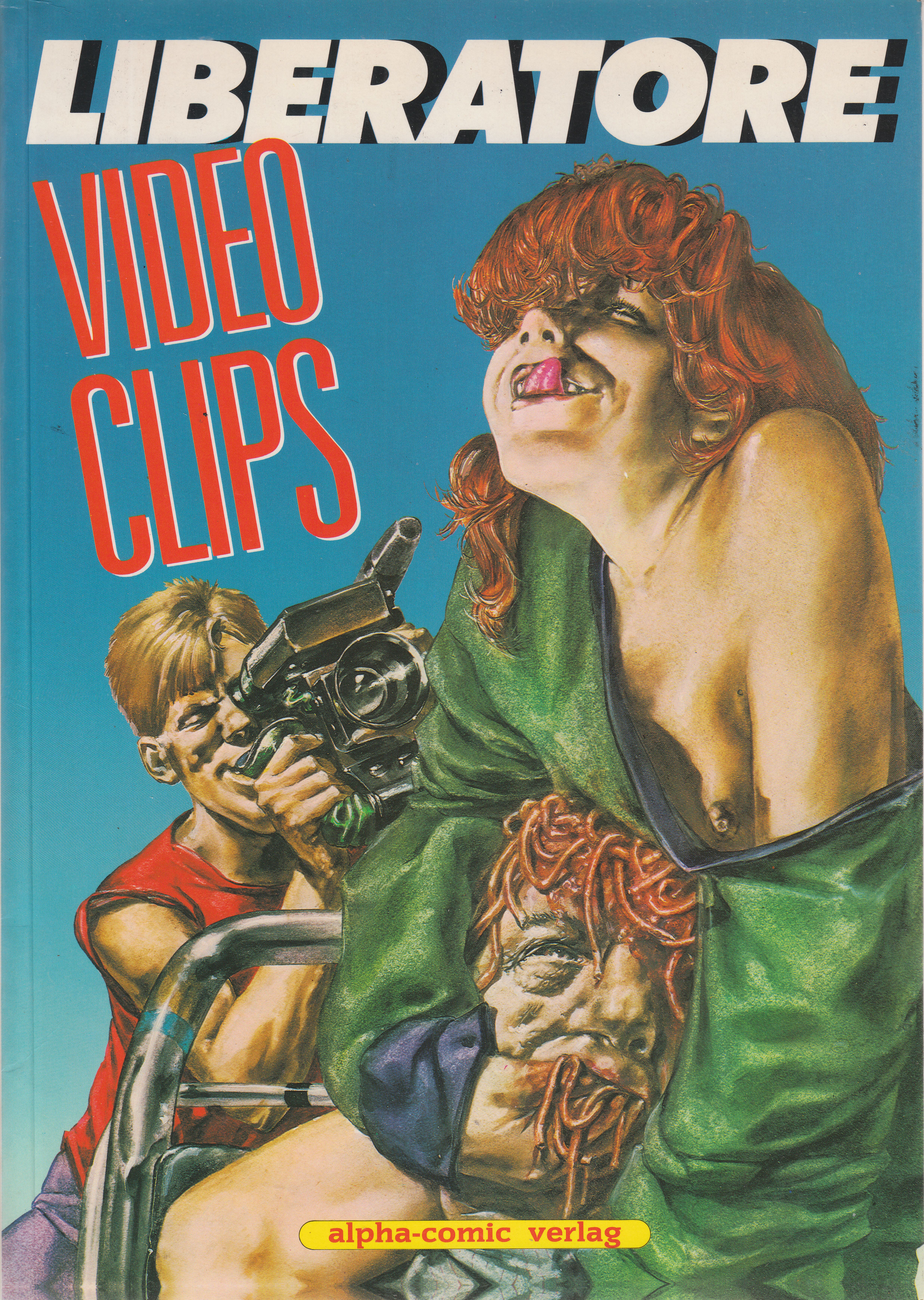 "Wer beugte sich an jenem Tag im April 1953 über das Kinderbett des kleinen Gaetano Liberatore? Vater Liberatore wird es nie erfahren, auch wenn er ein dämonisches Geschöpf verdächtigt, an jenem Tag in der Nähe von Quadri auf seinen Hufen unterwegs gewesen zu sein. Jedenfalls hat sich Liberatore zum Schlechten hin entwickelt. Man sah ihn schon als Arzt, aber er zog Pinsel und Bleistift dem Skalpell und Tupfer vor. Mit 26 Jahren: Liberatore sprengte alle unsere Normen, als er Ranxerox schuf. Liberatore ließ uns schneller alt werden, stürzte unsere Idole wie in italienischen Monumentalfilmen. Doch Liberatore hat nicht alles gesagt, er wird uns nicht so schnell loslassen, Liberatore will uns fertigmachen. Ein Beweis dafür ist "Video Clips", dieses großartige Mosaik. Doch passen Sie auf, die Show ist nicht ohne Gefahr, sie frißt die Nervenzellen, verflüssigt die Hirnrinde. Wegen dieses genialen Künstlers werden Sie nach der Lektüre dieses Bandes nie mehr der gleiche sein. Irgendwo in den Abruzzen leckt sich bestimmt das Ungeheuer von Quadri die Lippen."