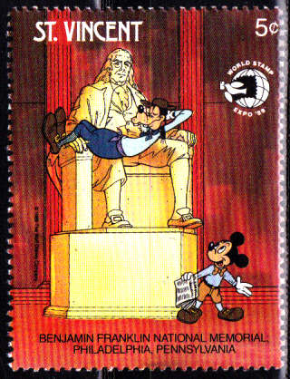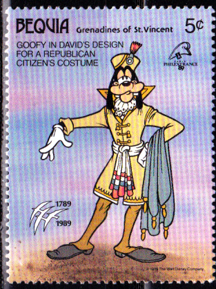 In St. Vincent Grenadinen, Bequia erschien am 7. Juli 1989 zum 200. Jahrestag der Französischen Revolution und zur Internationalen Briefmarkenausstellung PHILEXFRANCE ’89 in Paris eine Serie mit Walt-Disney-Figuren. Bequia ist mit 18 km² die größte Insel der Grenadinen und Teil des Staates St. Vincent und die Grenadinen. Der Name bedeutet „Insel der Wolken“. Auf der Insel leben ca. 5.000 Einwohner. Diese sind überwiegend Nachkommen schwarzafrikanischer Sklaven.