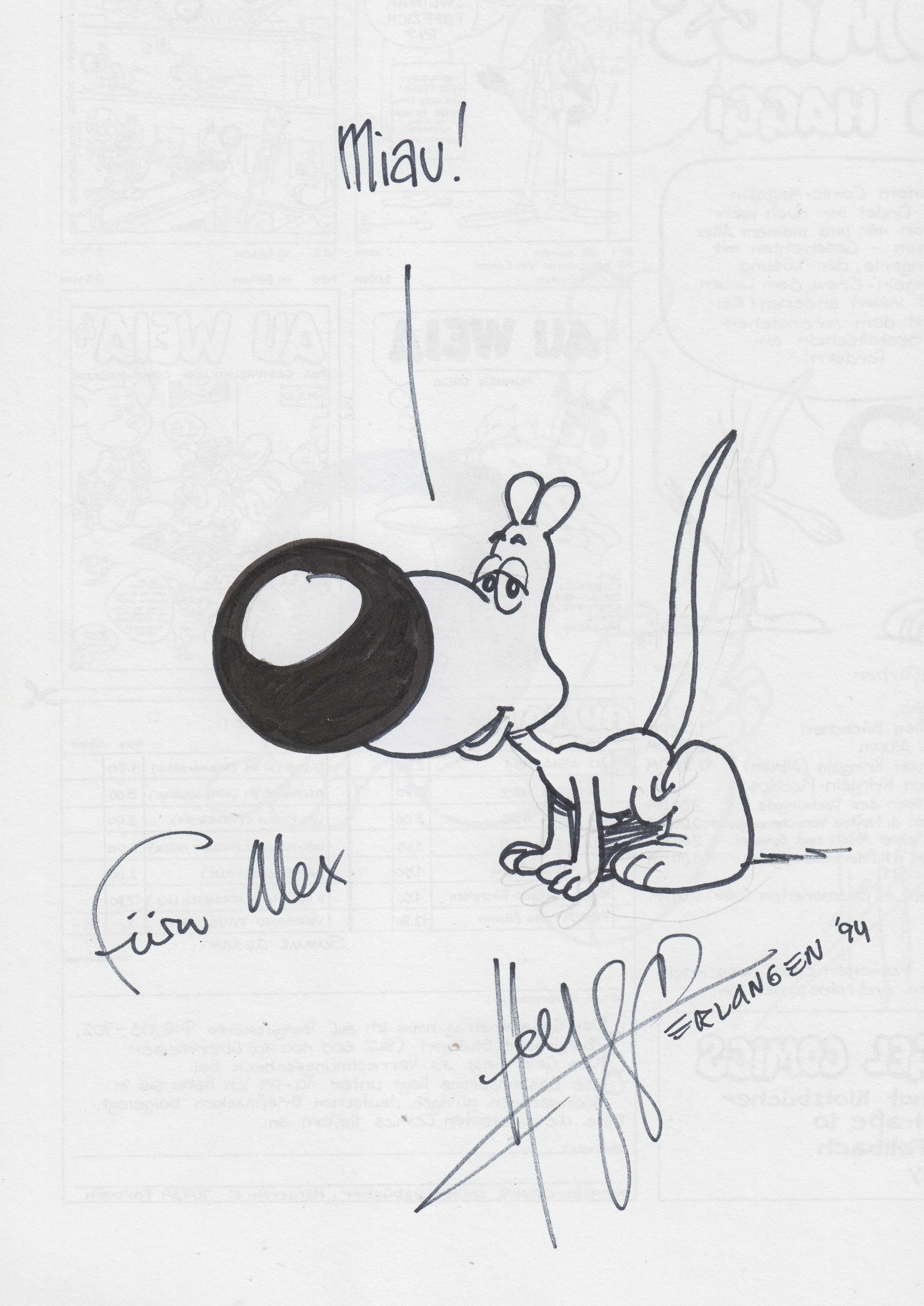 Zeichner war Eckart Breitschuh, der dieses Exemplar mit einem Sketch versehen und signiert hat: