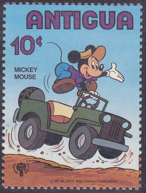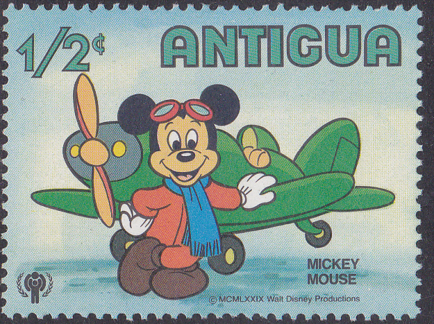 In einer Serie zum Internationalen Jahr des Kindes ist 1981 in Antigua und Barbuda diese Marke (MiNr 563) mit Mickey Mouse vor einem Flugzeug erschienen.