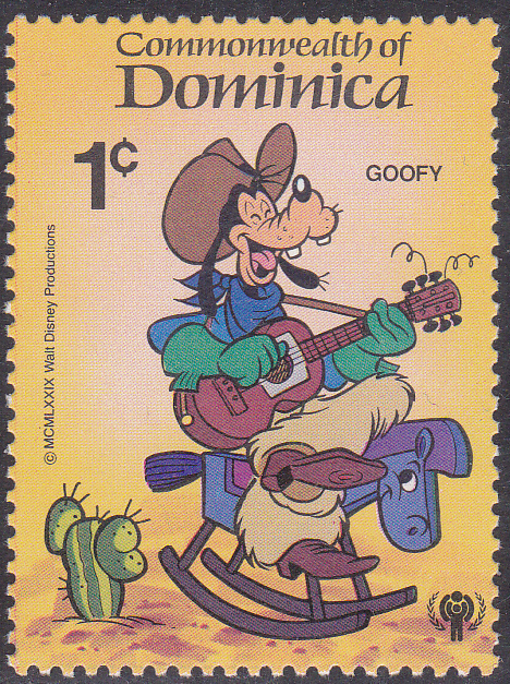 In einer Serie zum Internationalen Jahr des Kindes ist 1981 in Dominica diese Marke (MiNr 658) mit der Abbildung Goofy spielt auf einem Schaukelpferd Gitarre erschienen.