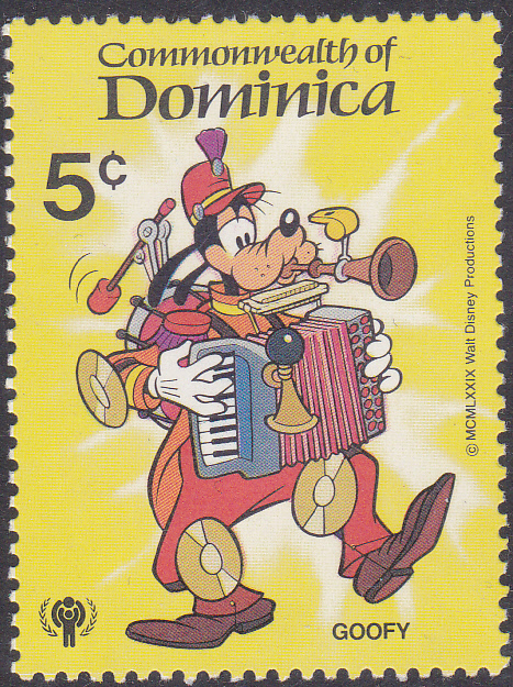 In der gleichen Serie zum Internationalen Jahr des Kindes ist 1981 in Dominica gibt es noch ein dritte Marke (MiNr 662) mit Goofy. Sie zeigt Goofy als Alleinunterhalter mit verschiedenen Musikinstrumenten.