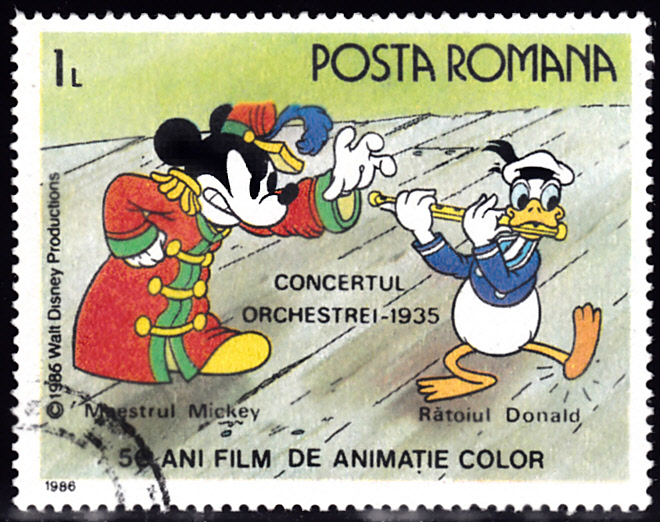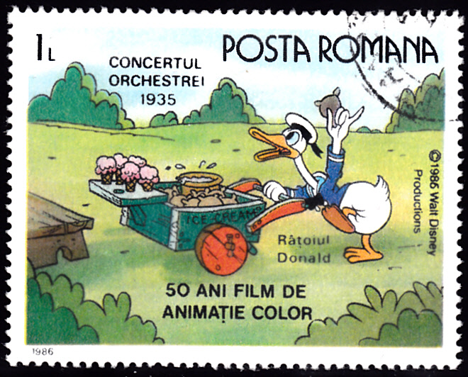 In Rumänien ist in einer Serie "50 Jahre Zeichentrickfilme in Farbe" mit Szenen aus dem Zeichentrickfilm "The Band Concert" auch diese Marke (MiNr 4247) mit dem Eisverkäufer Donald Duck mit seinem Eiswagen erschienen.