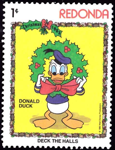 Auf Redonda (Redonda liegt etwa 55 km westlich von Antigua und gehört zu Antigua und Barbuda) ist zu Weihnachten 1983 eine Serie mit Darstellungen zum englischen Weihnachtslied "Deck the Halls" durch Walt-Disney-Figuren.