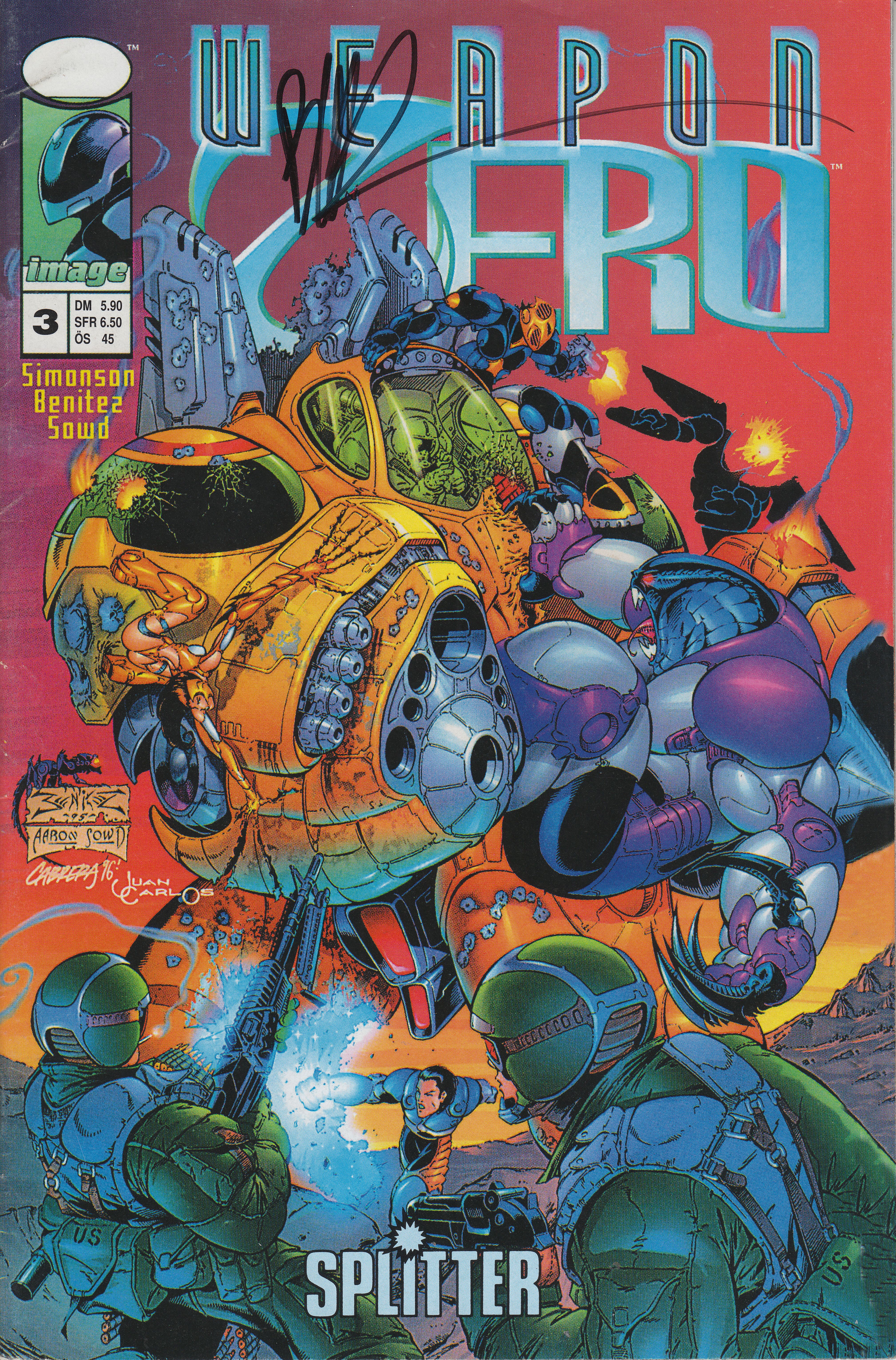 Hier die deutsche Ausgabe des Comicheftes WEAPON ZERO #3, signiert von Joe Benitez während der Leipziger Buchmesse 2018: