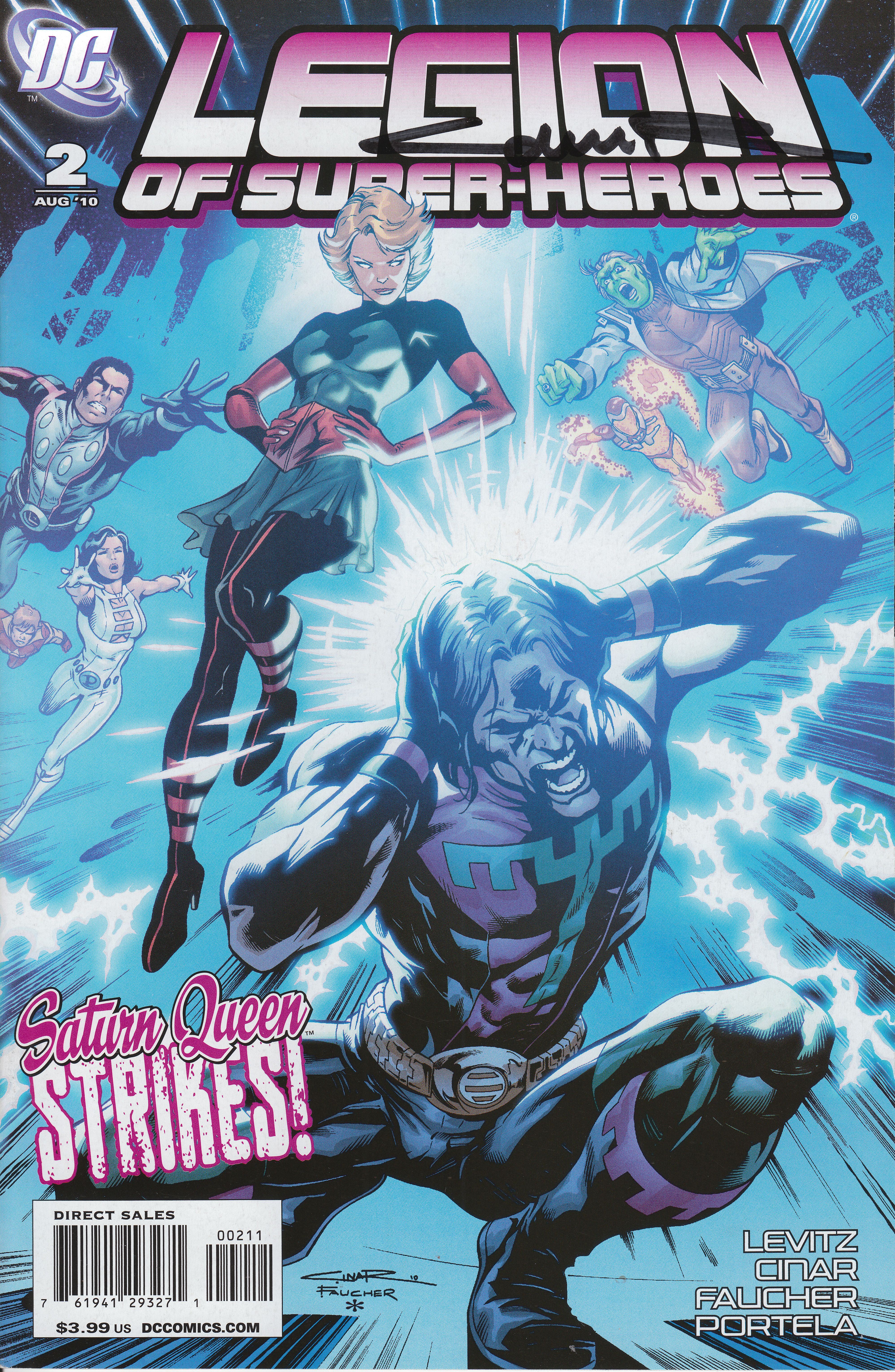 LEGION OF SUPER-HEROES Volume 6 # 2, erschienen im August 2010 bei DC Comics, signiert vom Penciller Yıldıray Çınar:
