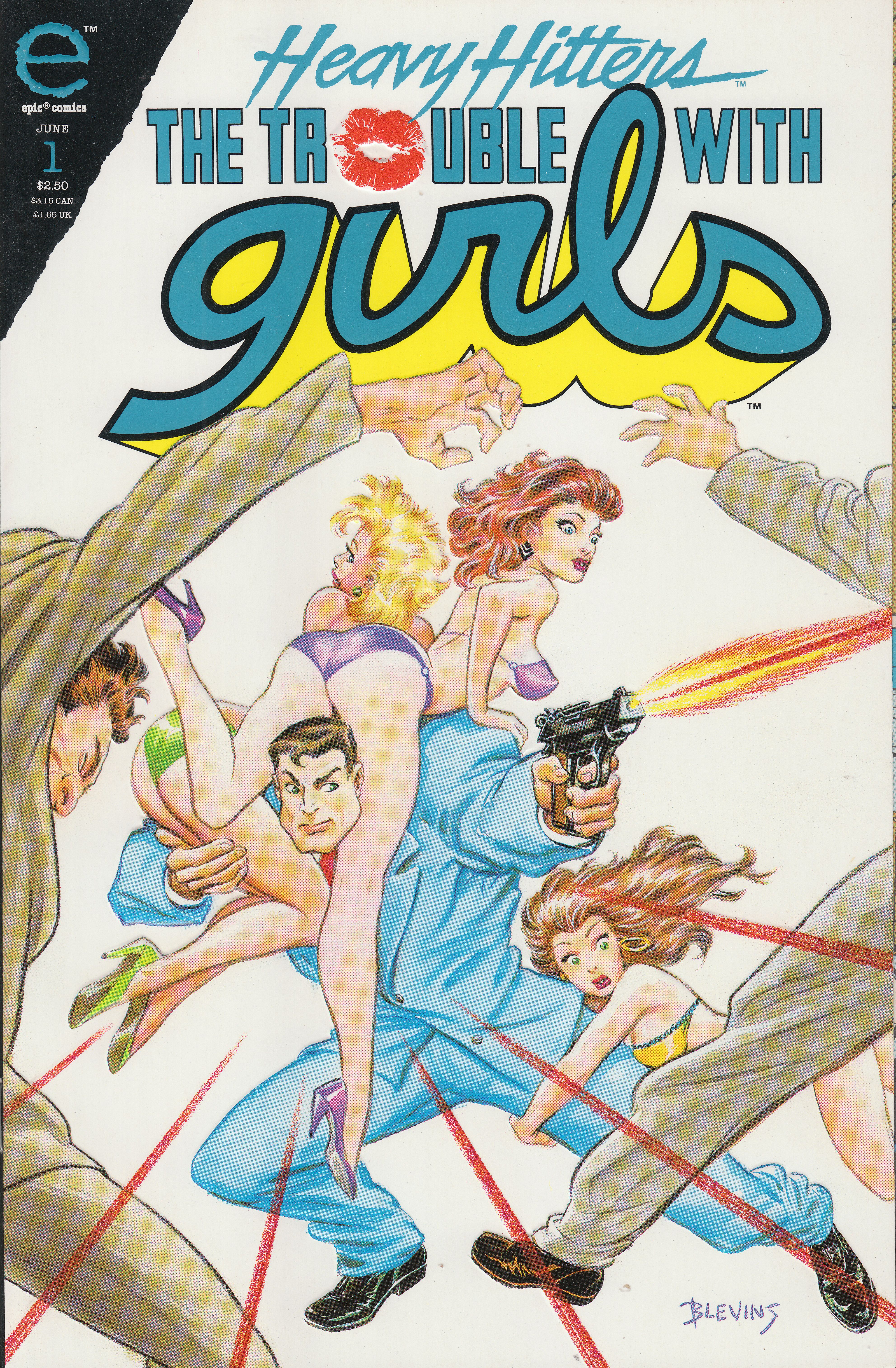Das Besondere an diesem Comicheft von Epic Comics "THE TROUBLE WITH GIRLS: NIGHT OF THE LIZARD BOOK ONE OF FOUR" ist, dass die Titelseite im Prägedruck ausgeführt wurde, was dem Kußmund sowie den gezeichneten Figuren dreidimensionale Tiefe gibt: