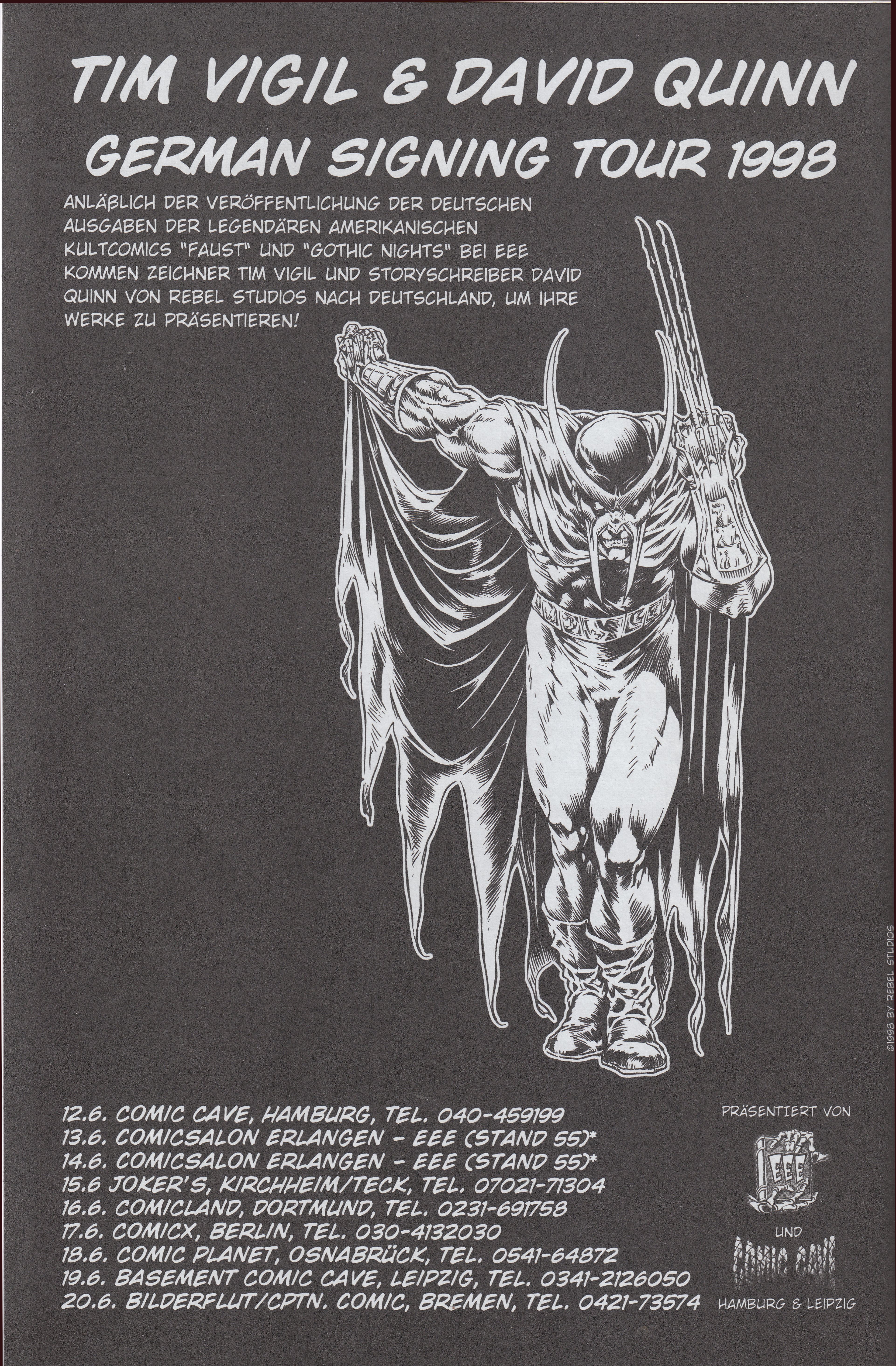 1998 war er in Deutschland auf einer Signiertour aus Anlass des Erscheinens der deutschsprachigen Ausgabe von "Gothic Nights":