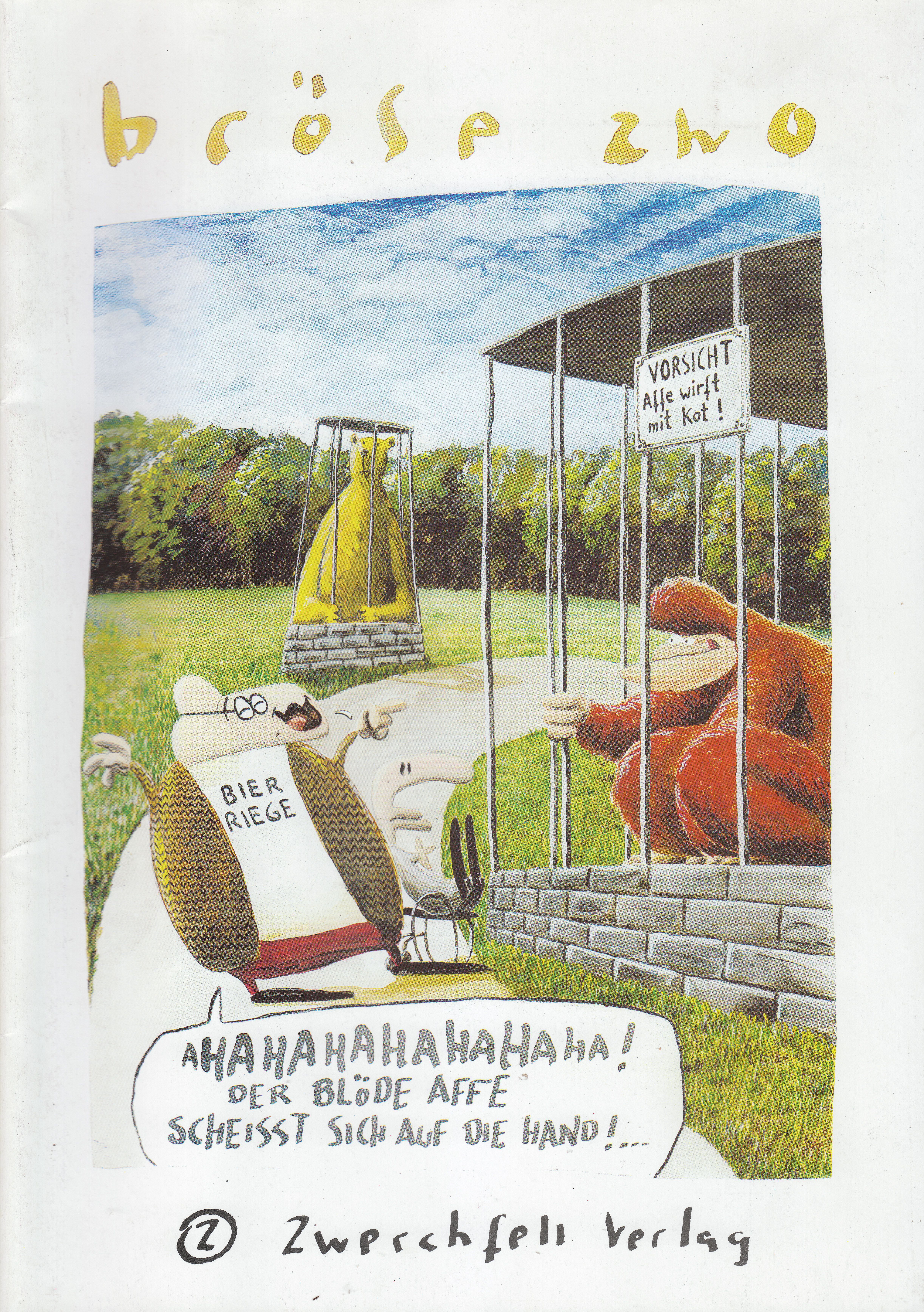 Dieses Comicalbum "Bröse Zwo" Heft 2 "Der Affe wirft mit Kot" erschien 1998 im Hamburger "Zwerchfell Verlag":