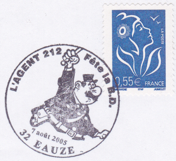 In einem Sonderstempel aus Eauze (Frankreich) vom 7. August 2005 wird der rundliche Polizist abgebildet.
