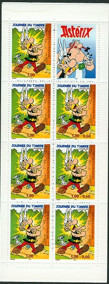 Zum Tag der Briefmarke 1999 erschien in Frankreich diese Asterix – Briefmarke mit Zierfeld, MiNr. 3367:
