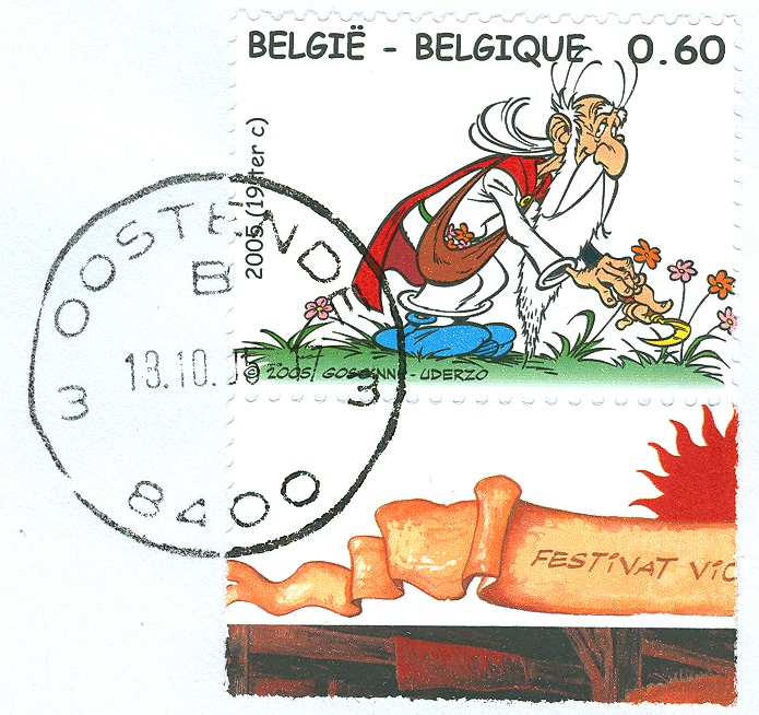 Es sieht bisher so aus, als würden Asterix-Ausgaben nur postfrisch gesammelt werden. Das dem nicht so ist, zeigt dieser Block mit einem Oostender Tagesstempel.