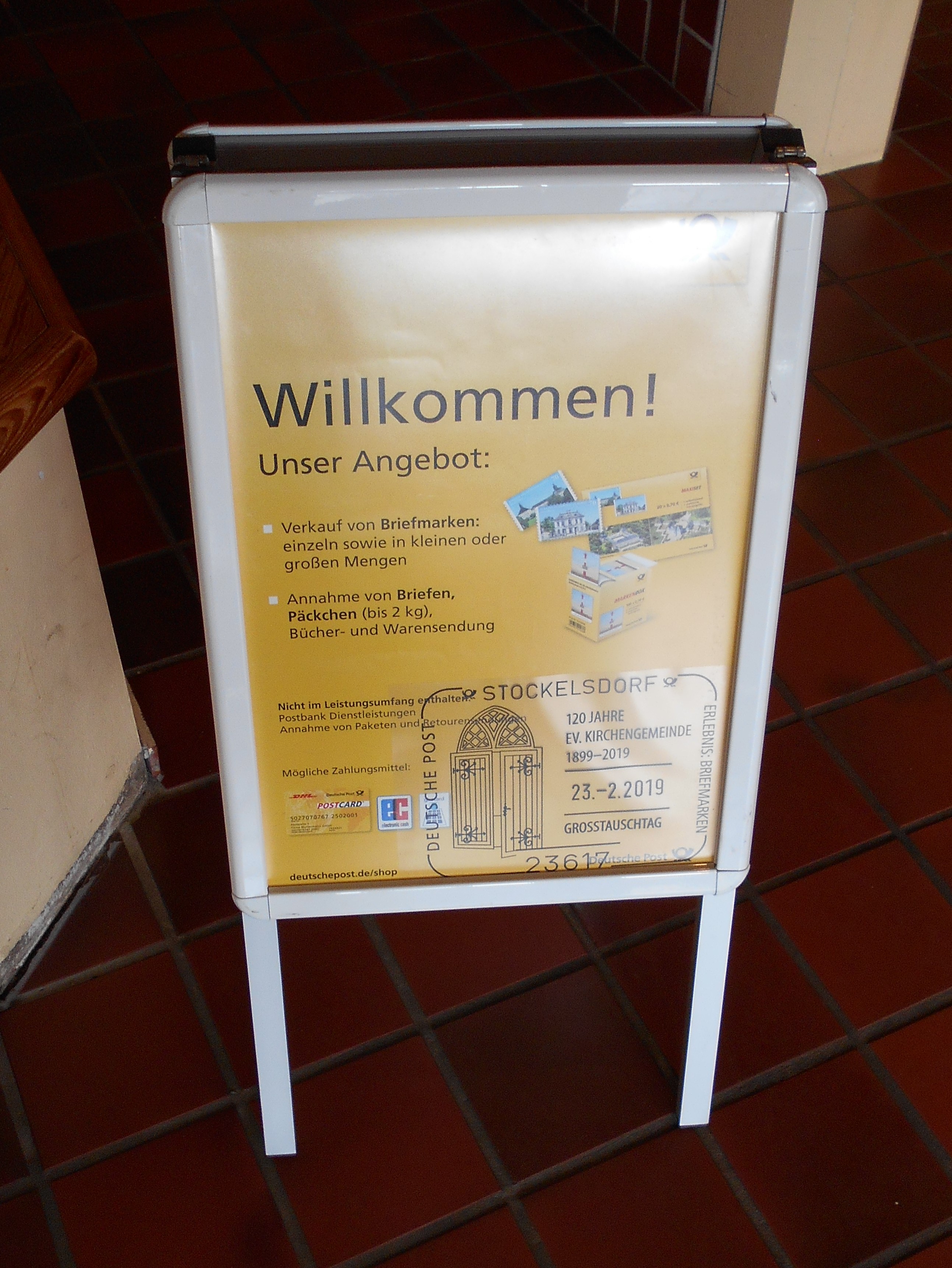 Es war ein schöner Tauschtag, viele nette Besucher und reger Zulauf beim „Sonderpostamt“. Im Eingangsbereich wurde ein sogenannter Kundenstopper auf gestellt, damit gleich jeder auf den Sonderstempel aufmerksam wurde.
